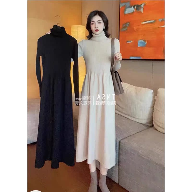 2023秋冬新款气质中长款连衣裙网红高档洋气修身显瘦遮肚针织毛衣