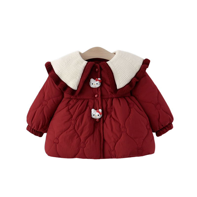 宝宝冬季棉服女童冬装加绒棉袄婴儿加厚喜庆长款上衣棉外套外出服
