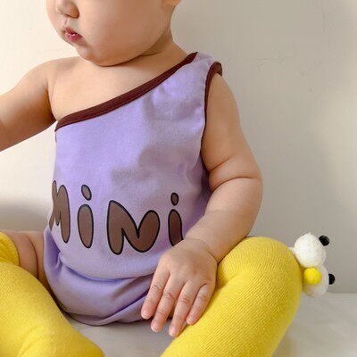 新生儿爬服网红露肩哈衣婴儿背心外出无袖夏装薄款吊带连体衣可爱