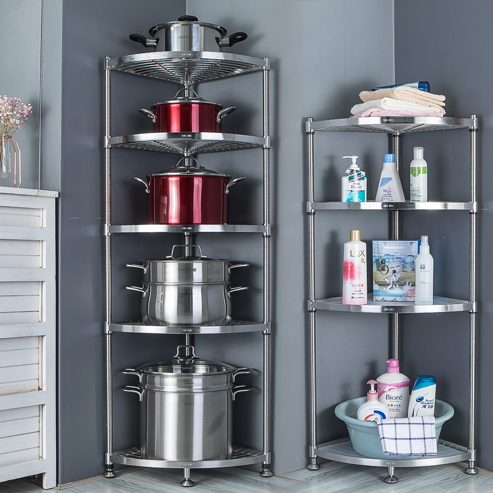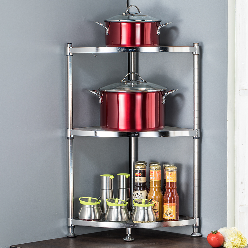 厨房拐角置物架三角落地多层不锈钢转角架子台面放电饭煲收纳锅架