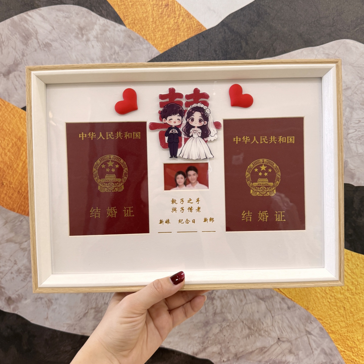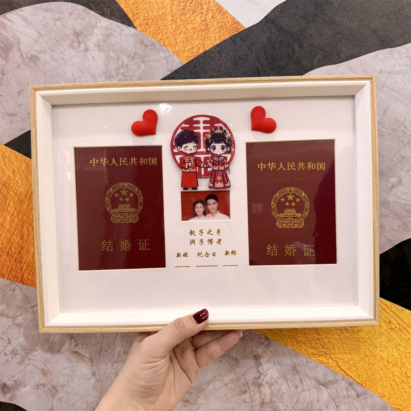 结婚证相框创意摆件情侣礼物夫妻周年纪念领证登记照婚姻证件摆台