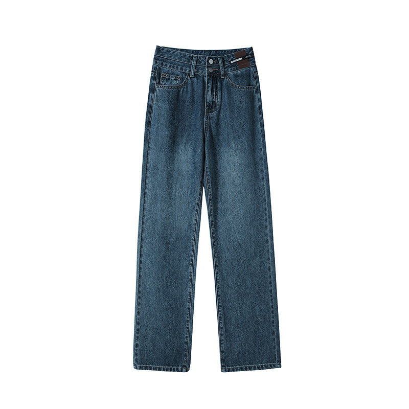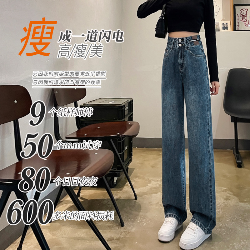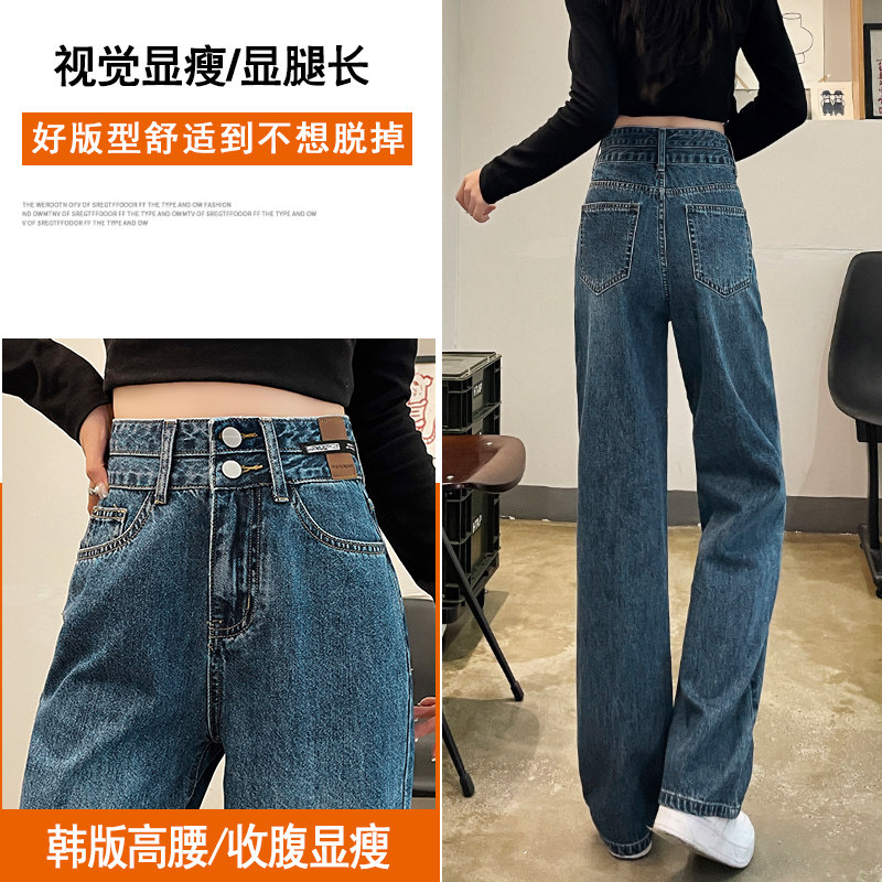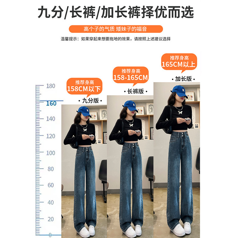 高腰直筒牛仔裤女2025冬季加绒加厚小个子显瘦宽松复古窄版阔腿裤
