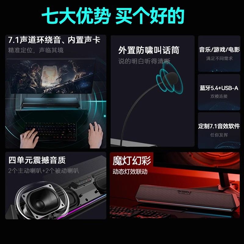 漫步者G1500BAR电脑USB插线蓝牙音响台式游戏电竞笔记本桌面音箱