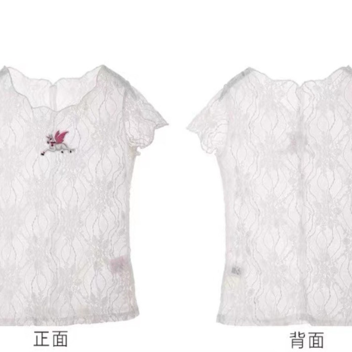 裂帛夏季小清新浪漫仙气独角兽刺绣花边朦胧蕾丝衫女