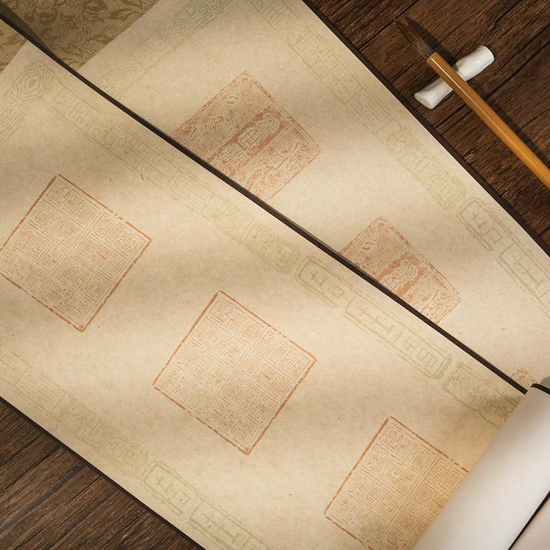 锦记大徽堂四言空白宣纸卷轴半生半熟复古楮皮麻宣纸毛笔书法作品纸四字瓦当格子学生书法创作练习纸挂轴