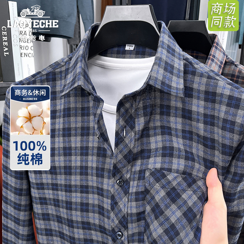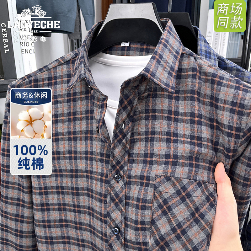老爷车纯棉磨毛格子衬衫男