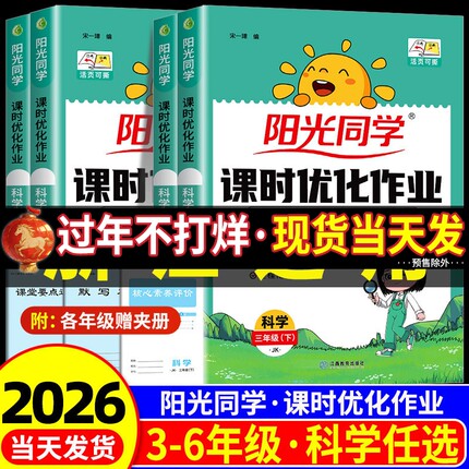 科学作业本浙江适用阳光同学课时优化作业三四五六年级上册下册科学教科版小学教材同步配套练习册测试卷题专项训练提优作业本专用