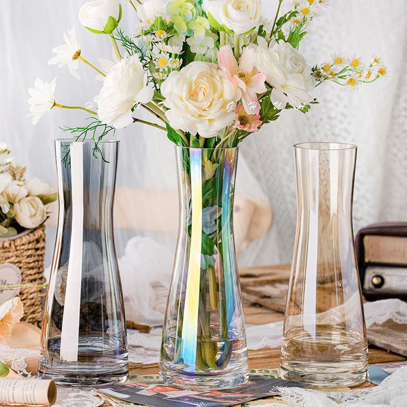 北欧简约客厅透明玻璃水养百合花瓶花瓶插炫彩创意富贵竹餐桌摆件