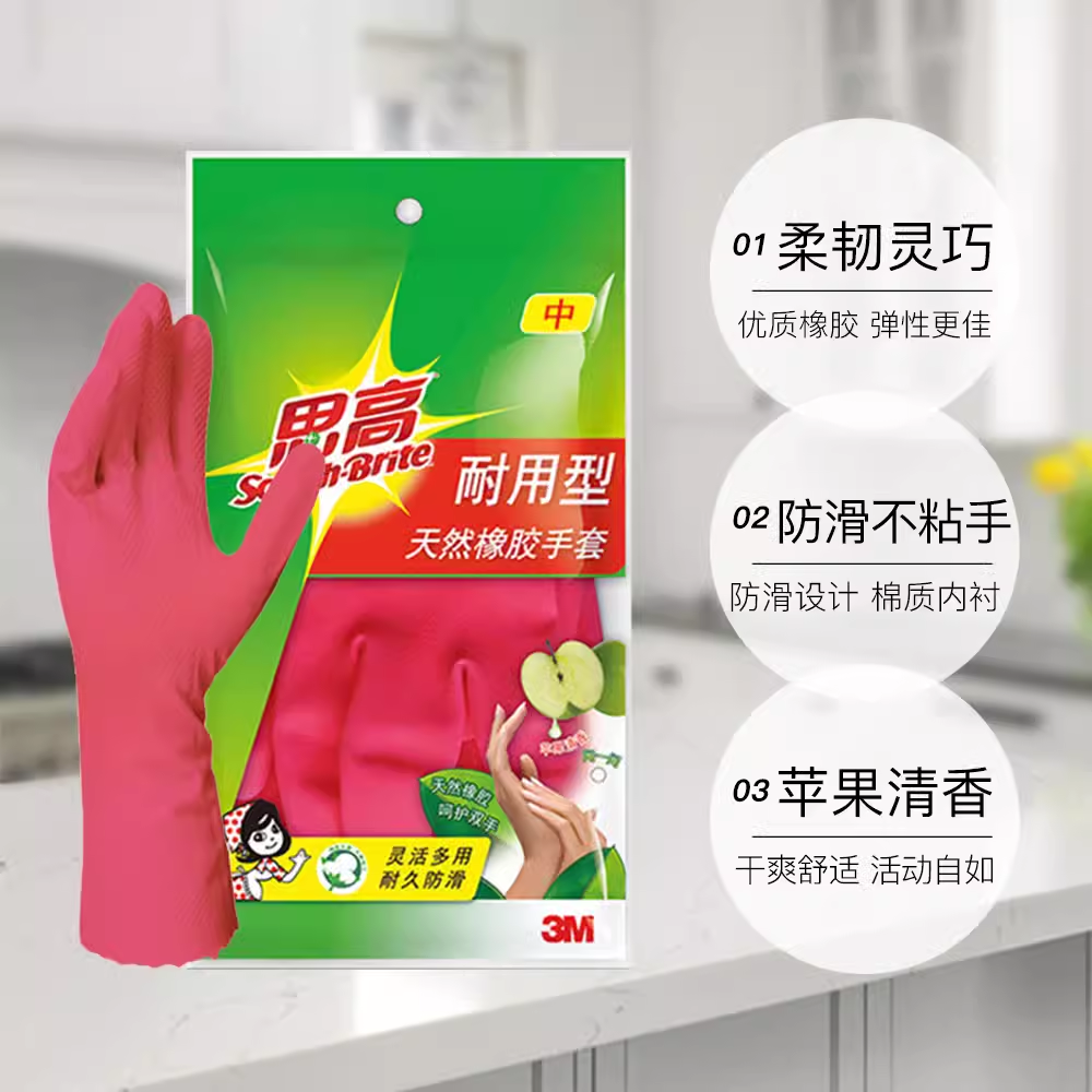 【3双~特惠】美国进口3M思高耐用加厚橡胶手套家用清洁防水洗碗