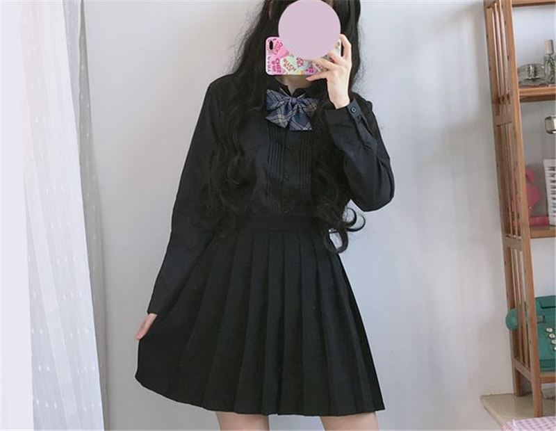 特大码女装微胖MM200斤遮肚日系JK学院制服百搭韩版黑色系带衬衫