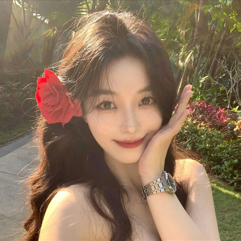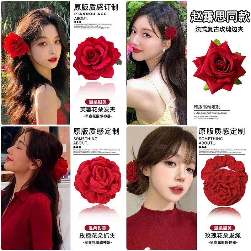 氛围感红花头饰玫瑰花发夹边夹侧边发卡女2025新款大花朵头花发饰