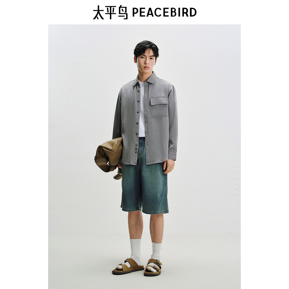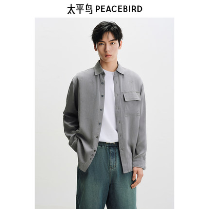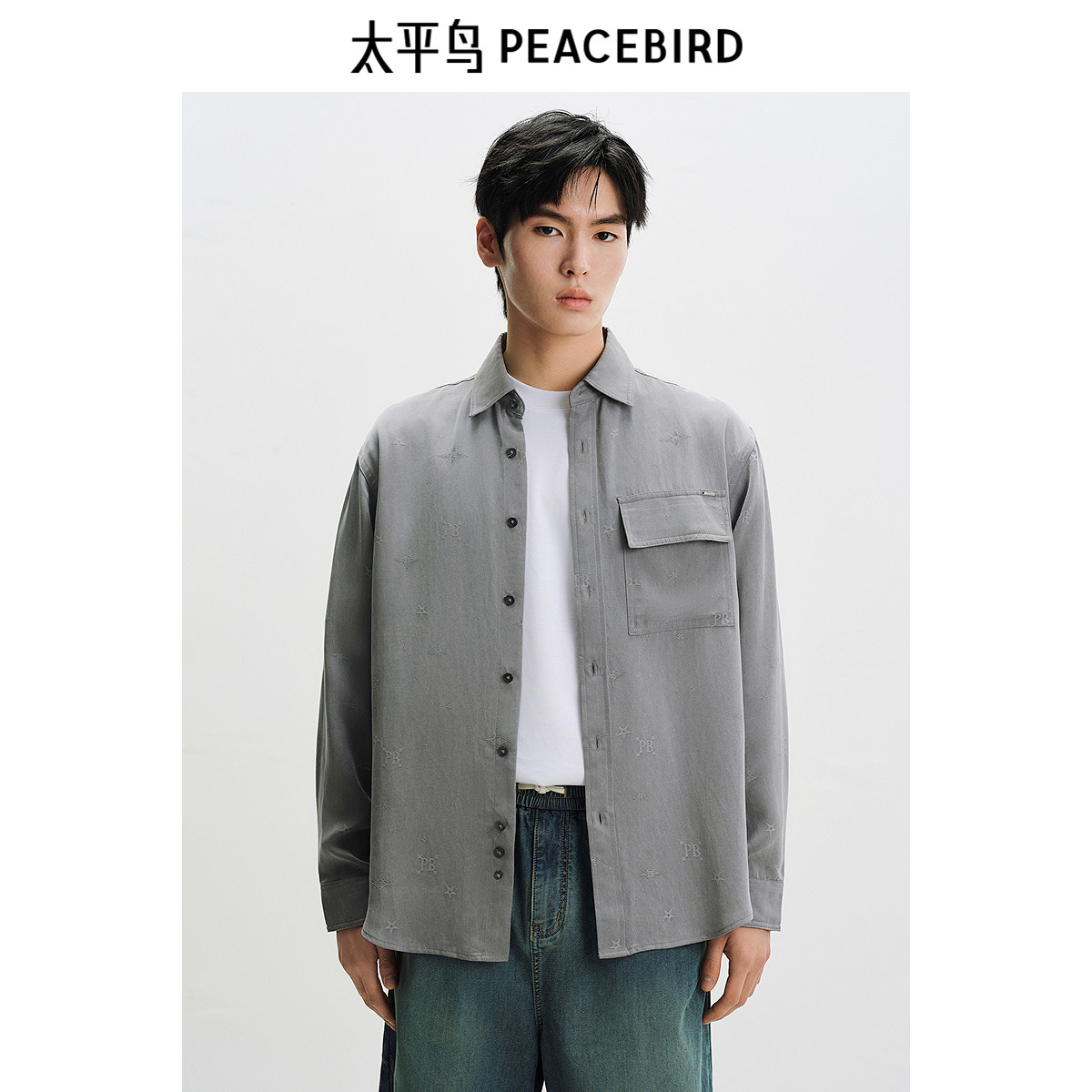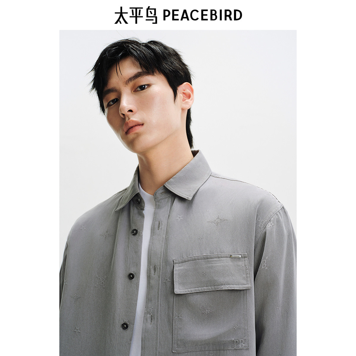 太平鸟男装 休闲衬衫新款长袖刺绣老花时尚衬衫男士长袖衬衣潮