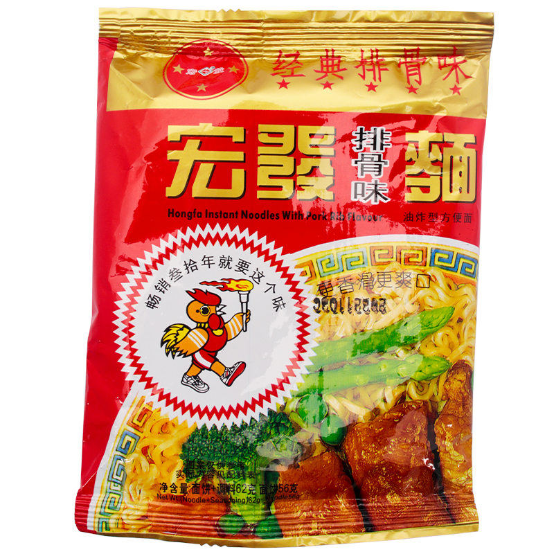 包邮童年回忆宏发泡面排骨面62克方便面24包一箱老牌泡面公鸡面