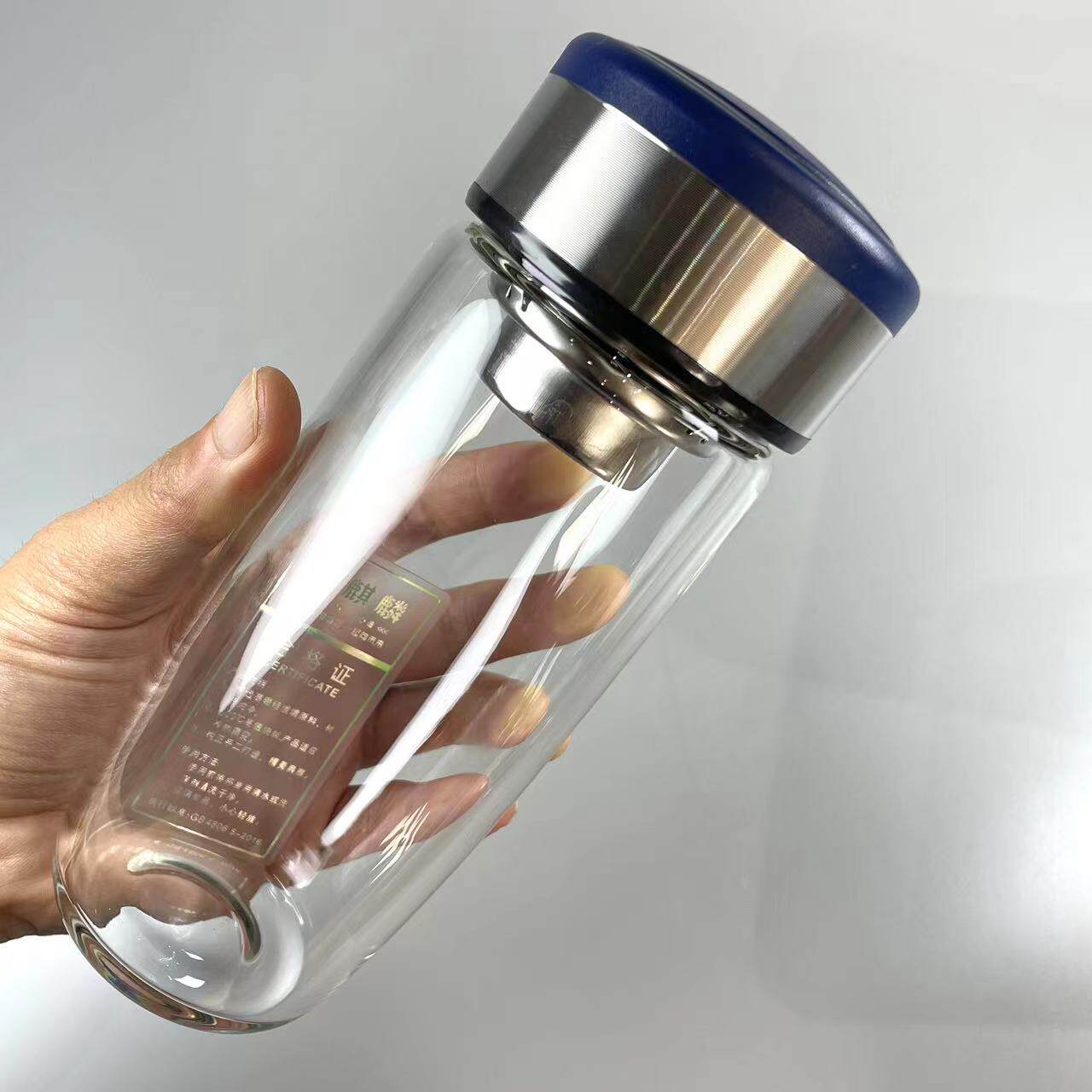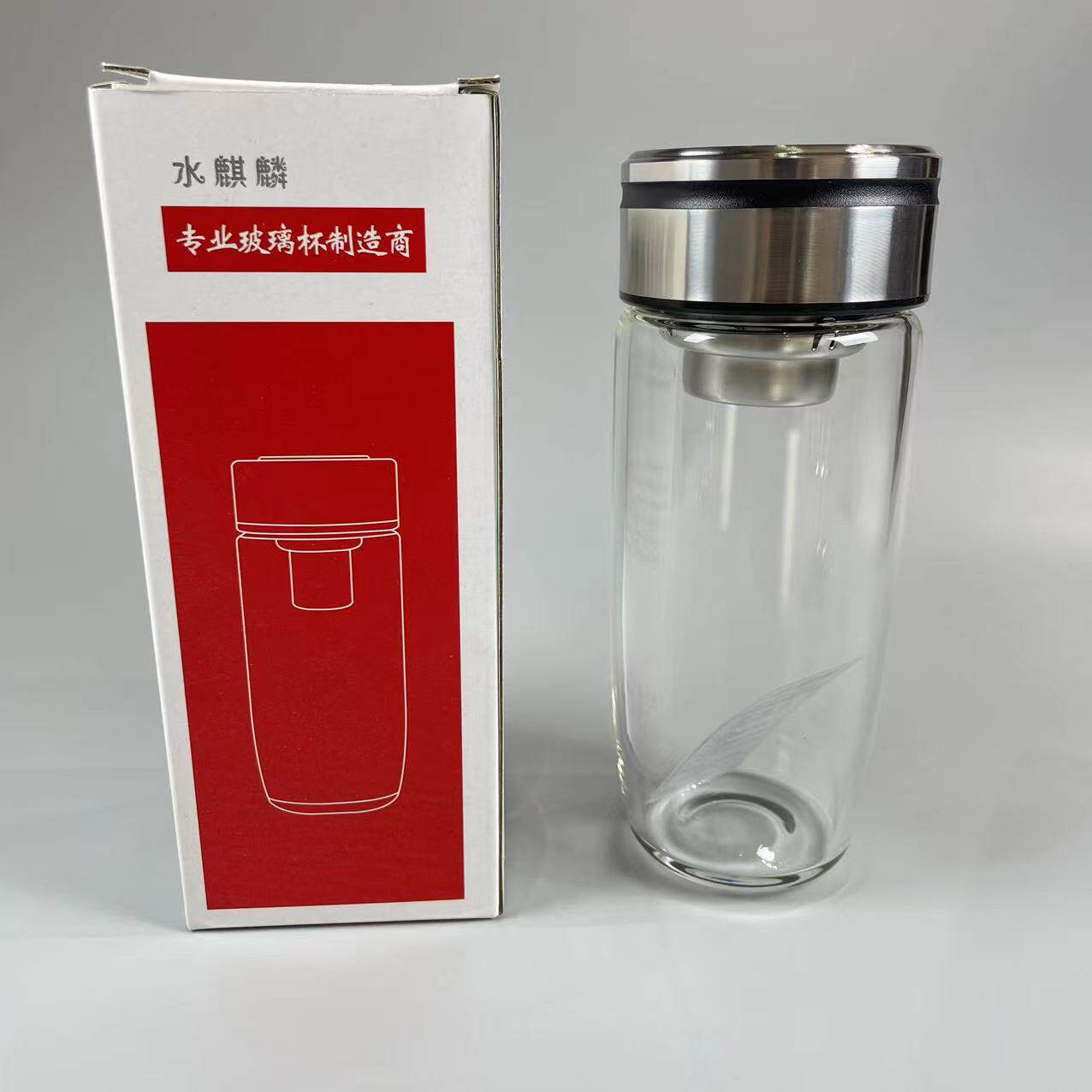 水麒麟单层大容量玻璃水杯带漏网