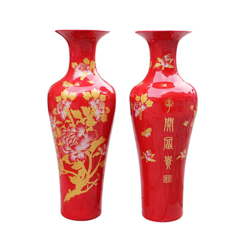 景德镇陶瓷器瓶中国红彩金牡丹花开富贵落地大花瓶U酒店客厅大摆