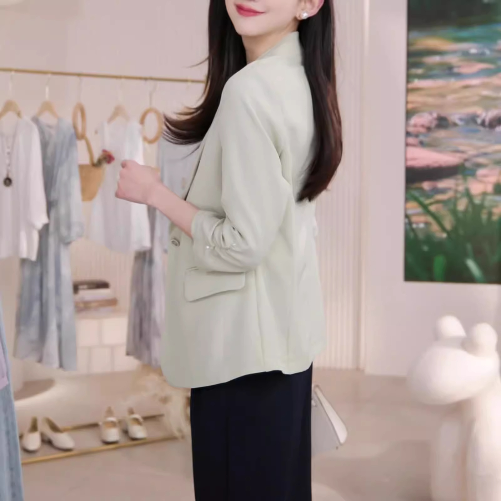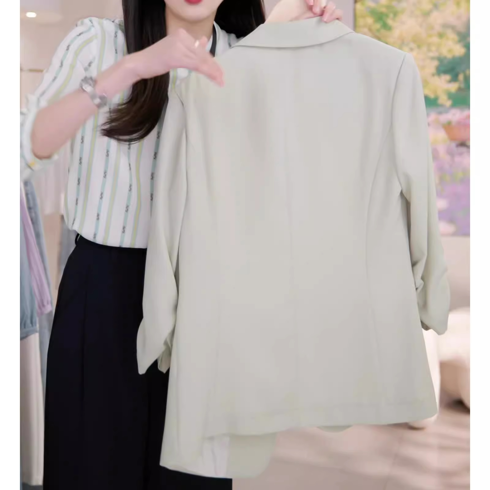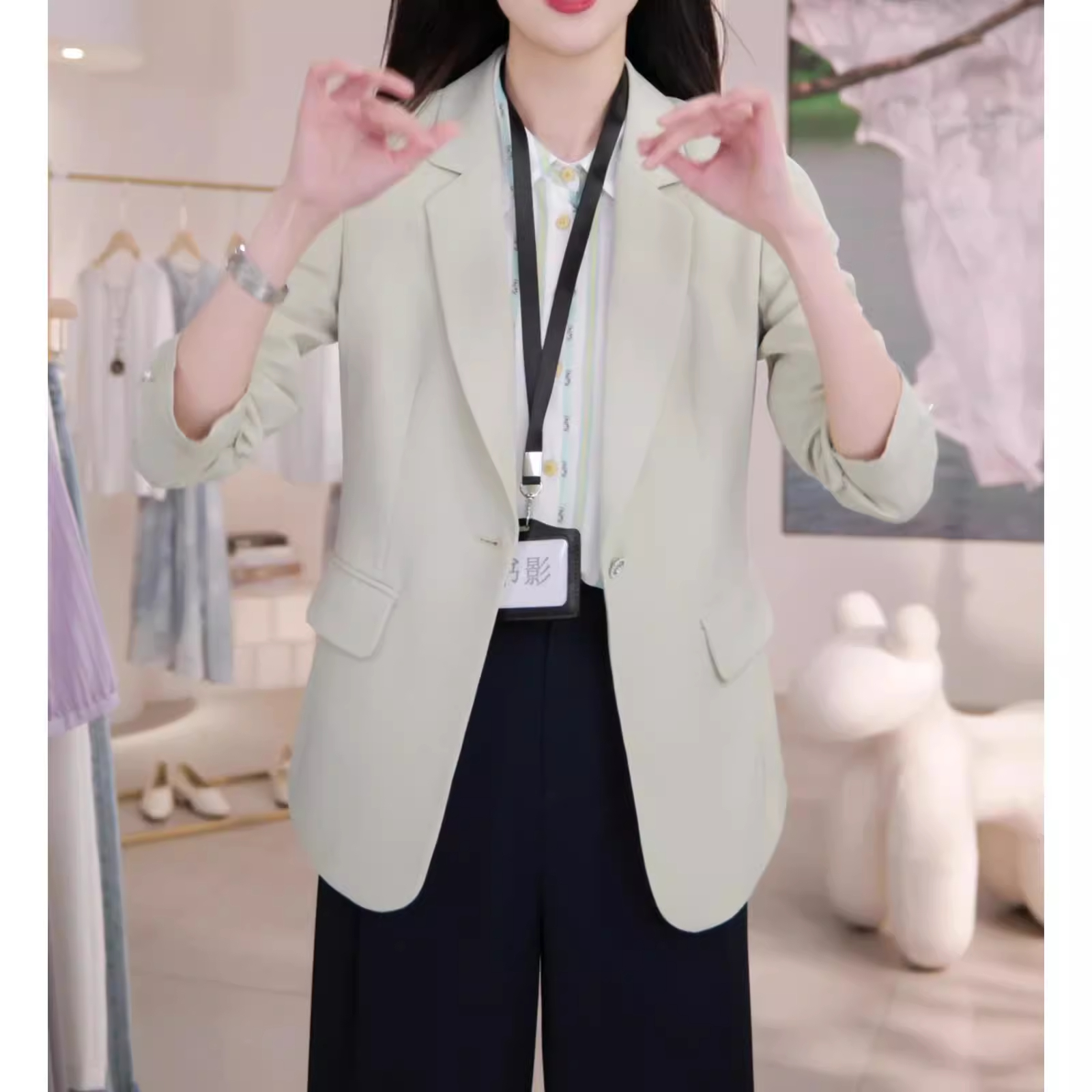 夏季薄款西装外套女高级感气质百搭七分袖西服女上衣单层外搭开衫