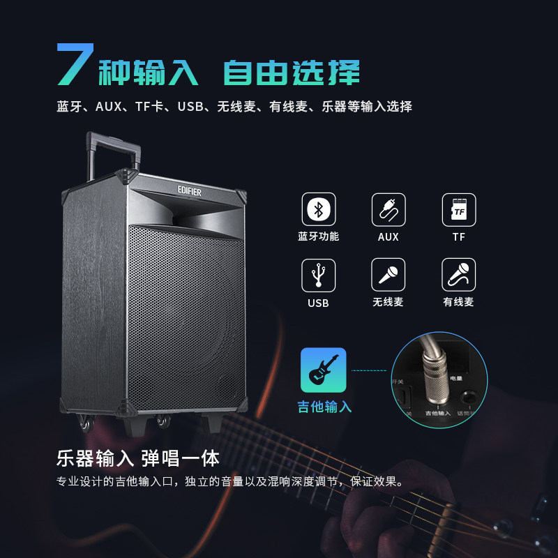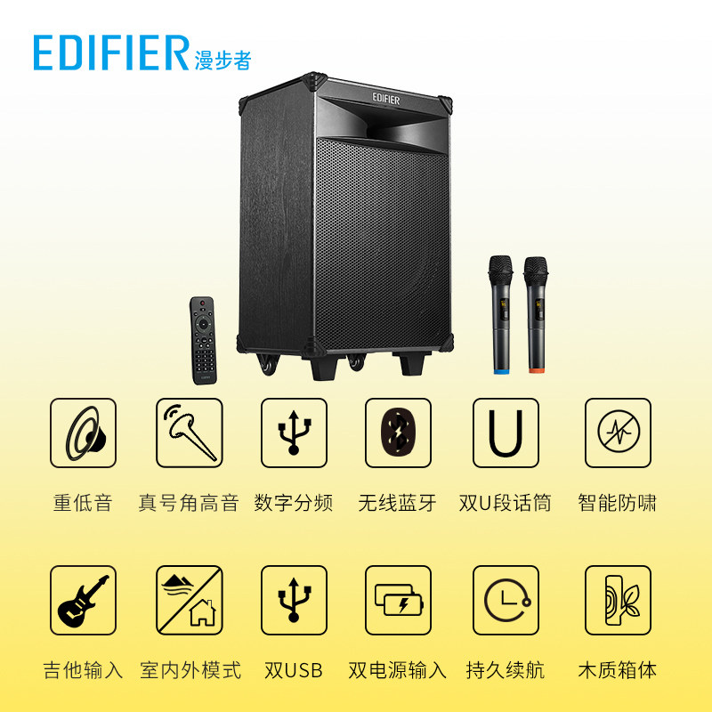 漫步者PW312移动蓝牙音响广场舞K歌拉杆音箱户外演出唱歌大音量