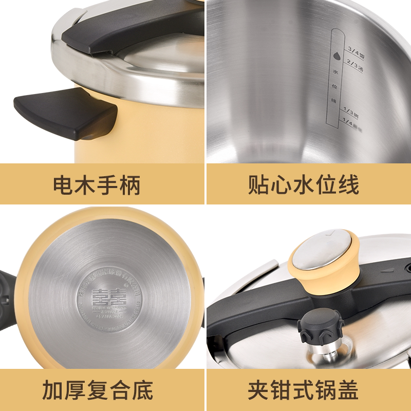 臻选 双喜夹钳式304不锈钢压力锅家用燃气电磁炉通用防爆高压锅