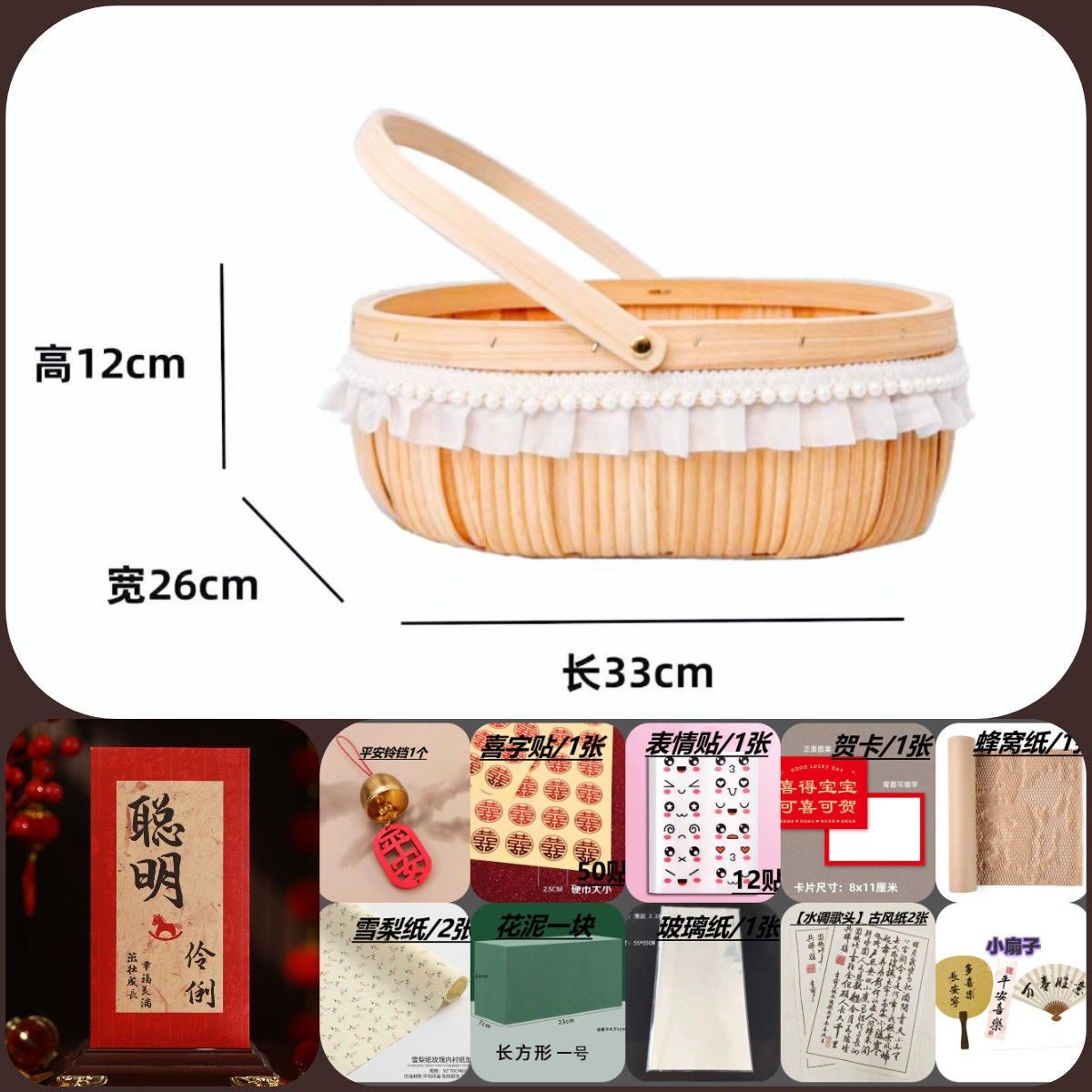月子花篮送产妇手提鸡蛋花篮木片编织提篮插花收纳水果孕妇篮木制
