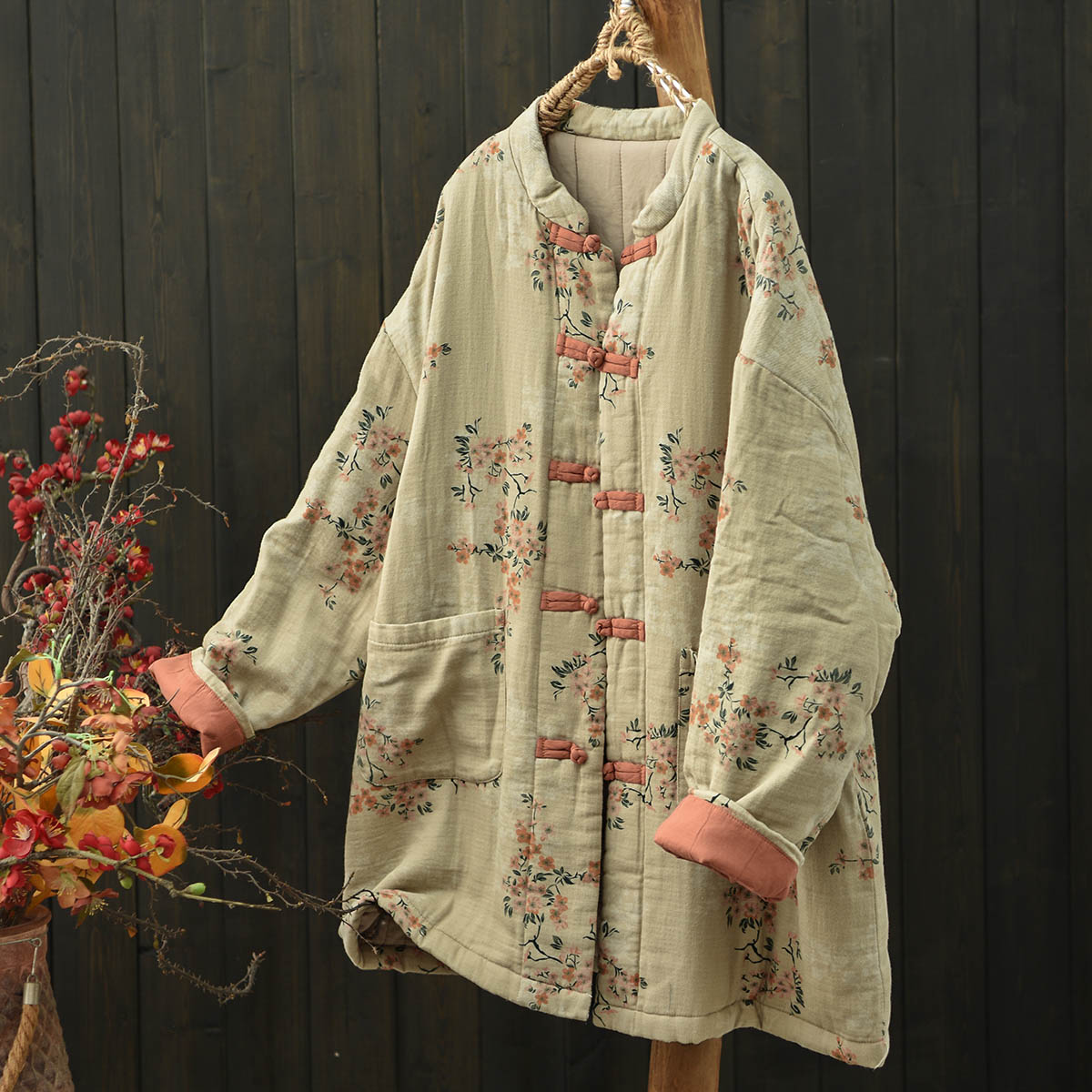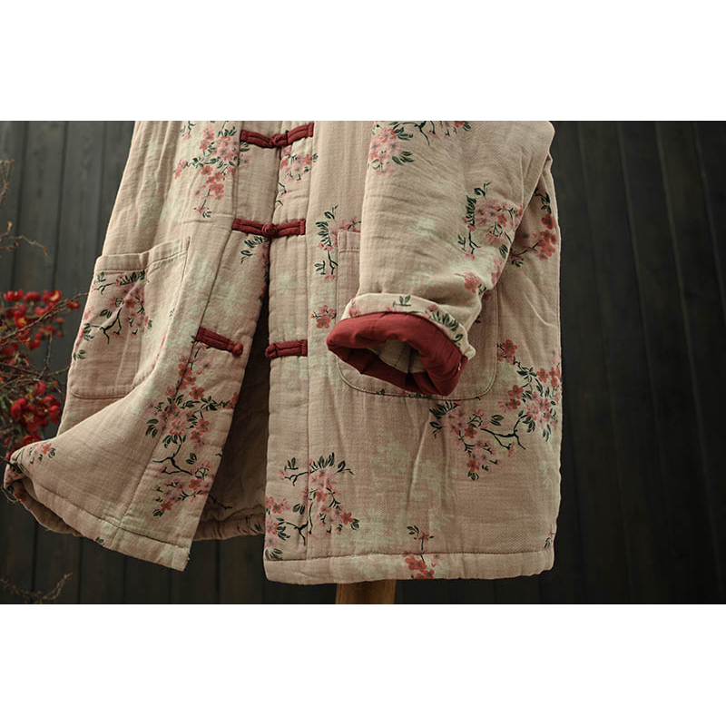 默念复古民族风印花盘扣中长棉衣棉服女秋冬宽松夹棉加厚上衣外套