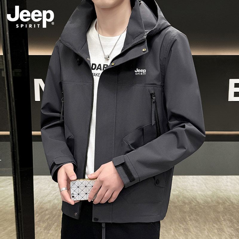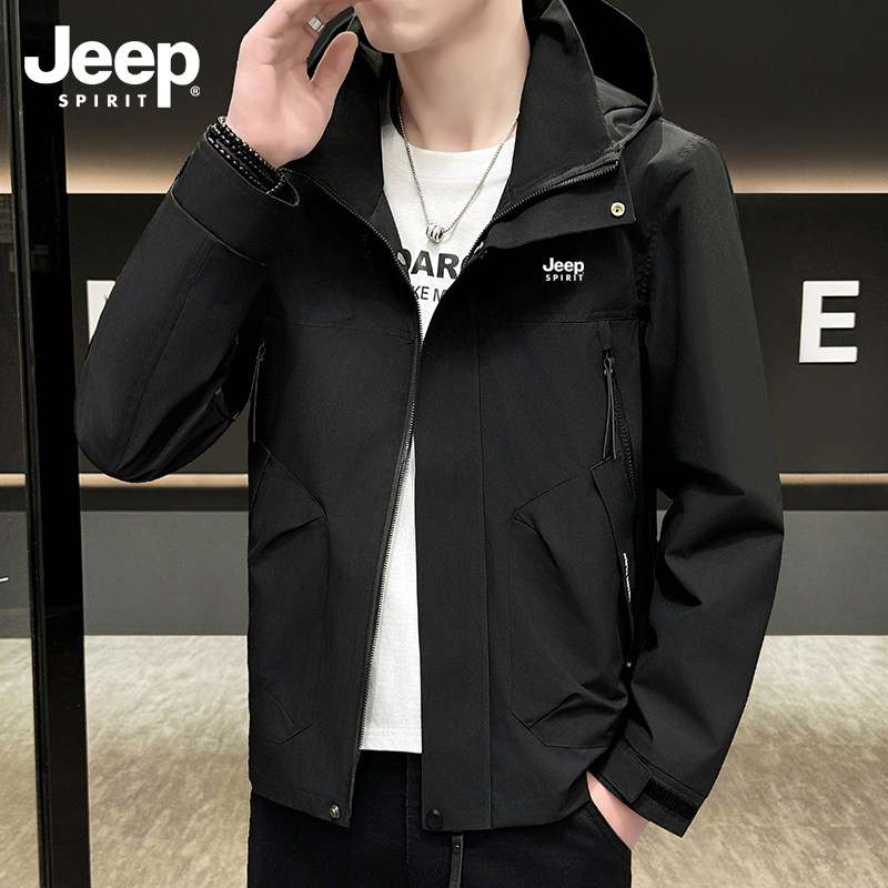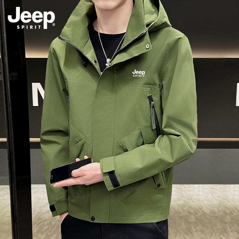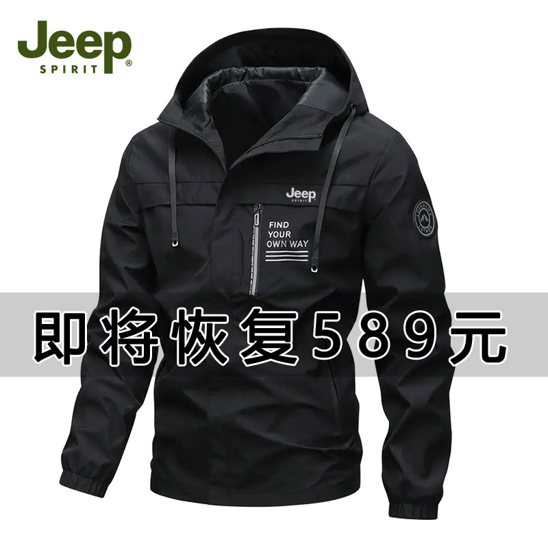 JEEP吉普连帽外套男冲锋衣防风上衣春秋冬季薄款运动工装休闲夹克