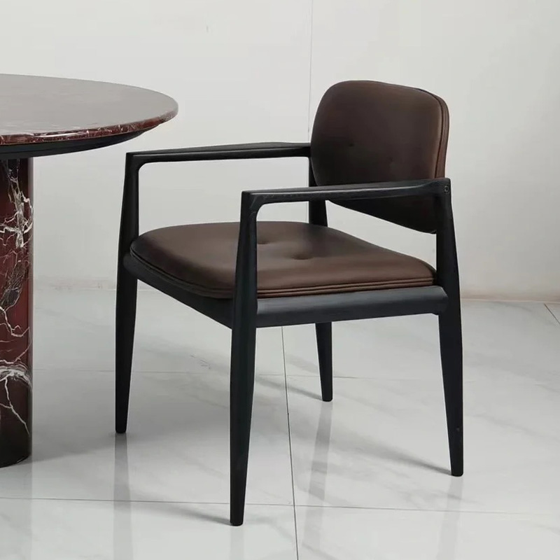 意式极简意大利靠背扶手椅家用客厅休闲餐椅北欧风白蜡木洽谈椅子