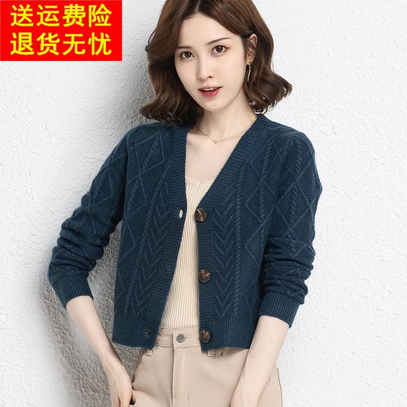 鄂尔多斯市短款羊毛针织外套女小个子开春穿搭配裙子毛衣开衫春季