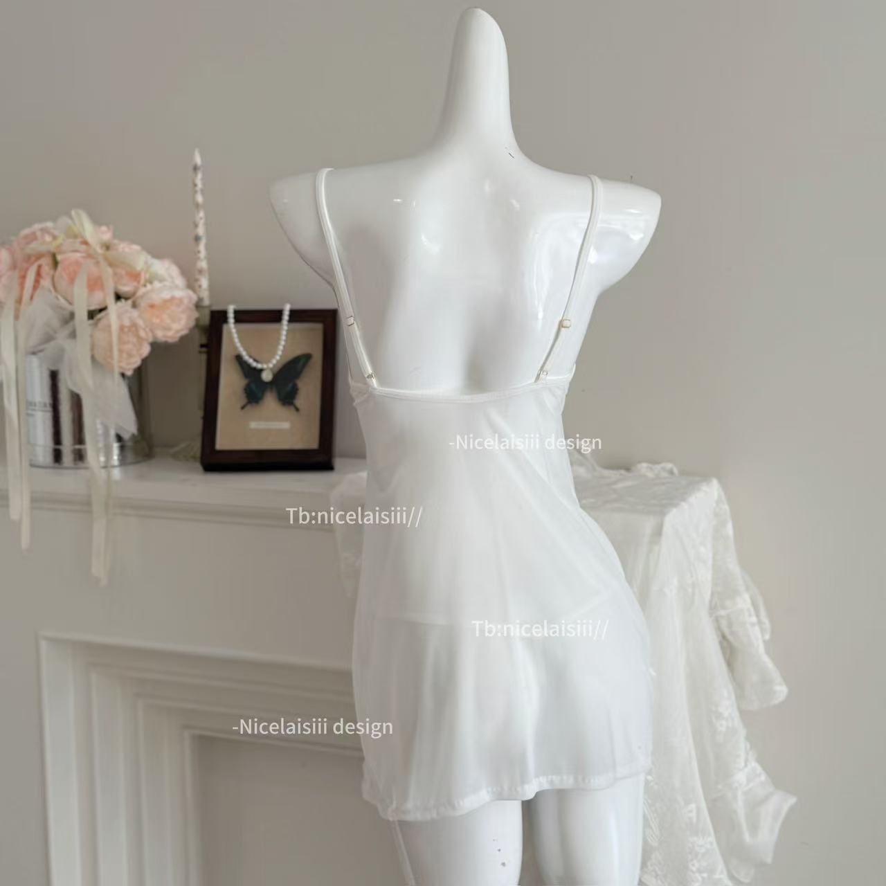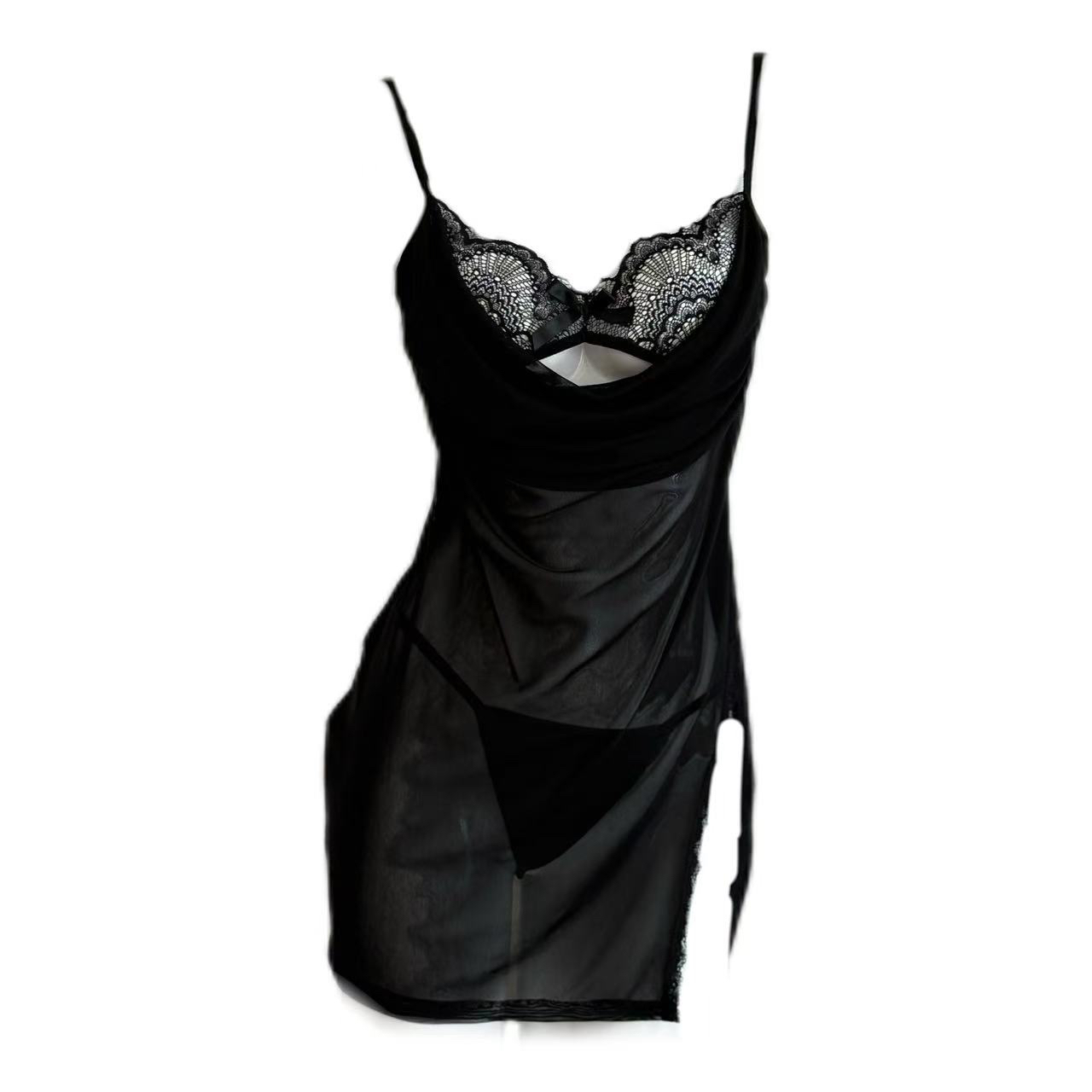 Nicelaisiii偷心契约 网纱蕾丝镂空吊带睡裙性感荡领透显瘦睡衣女