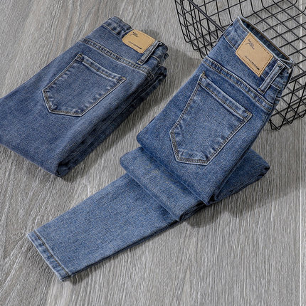 拉夏贝尔蓝色修身牛仔裤女2025新款紧身高腰显瘦加绒弹力小脚裤子