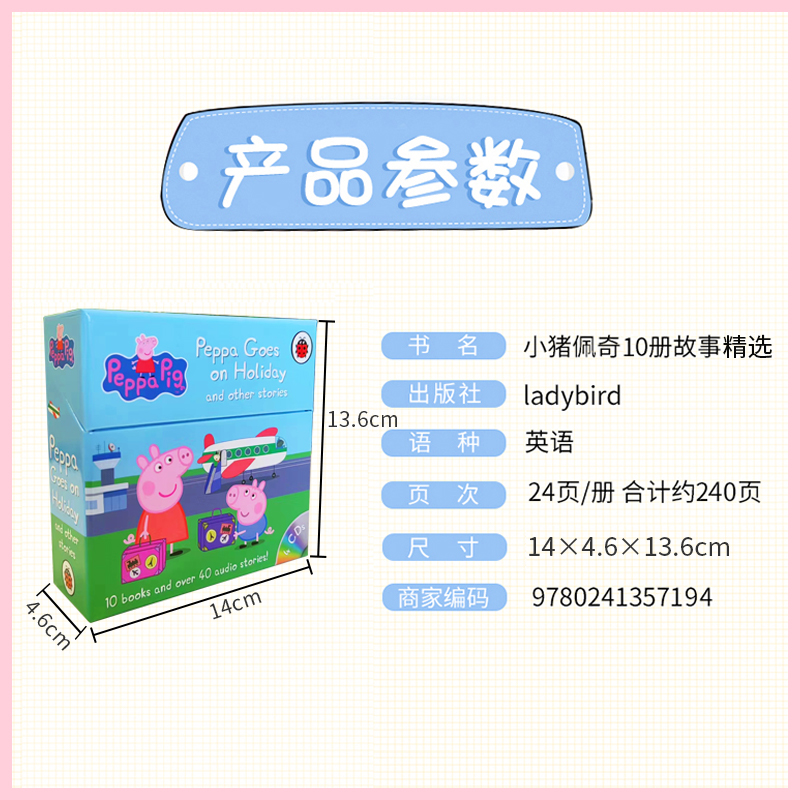 英文原版手掌书 双语点读 小猪佩奇peppa pig平装绘本10册 精选合集礼盒装 粉红猪小妹 3-6岁儿童早教启蒙 【支持小达人点读】