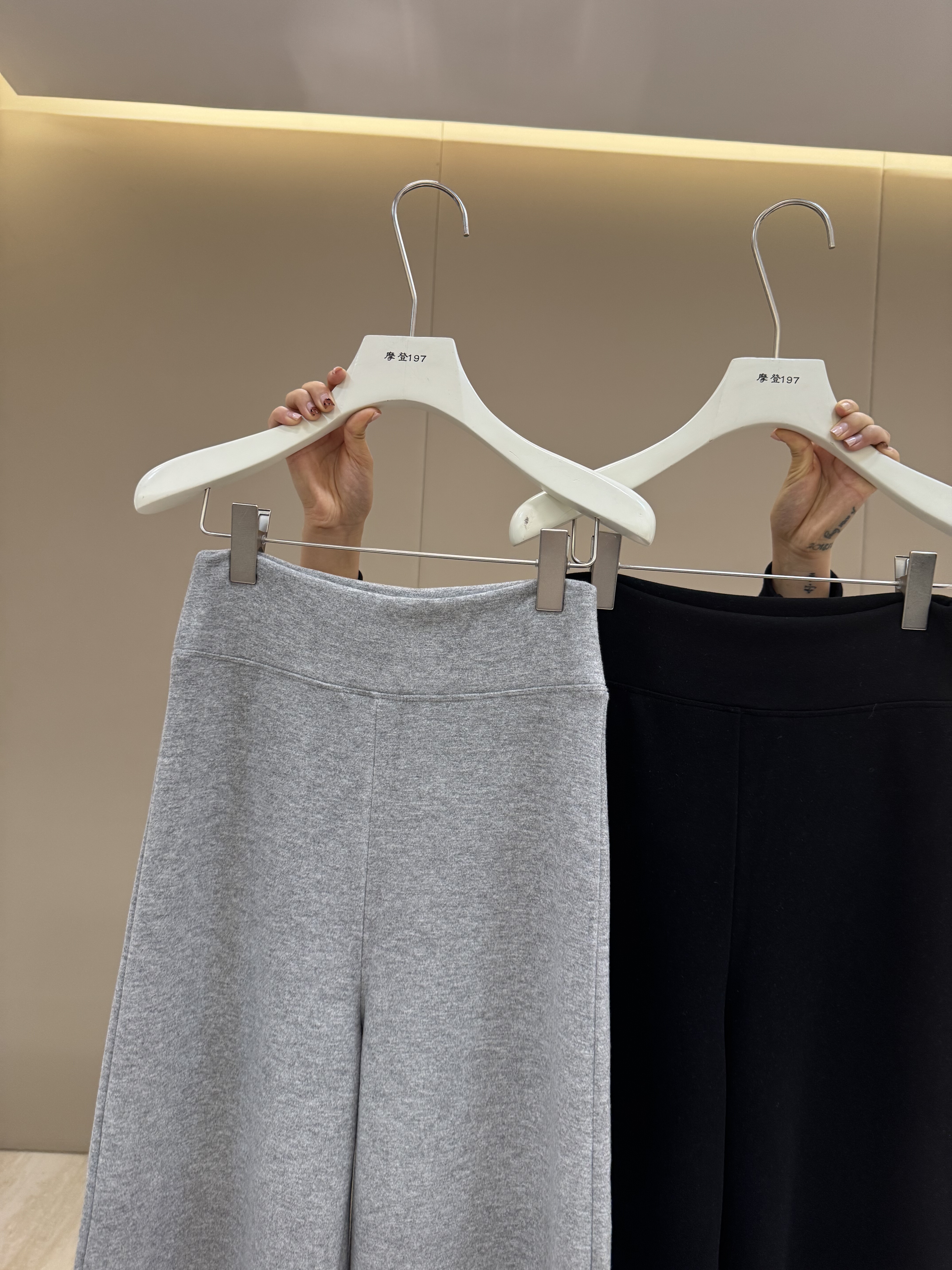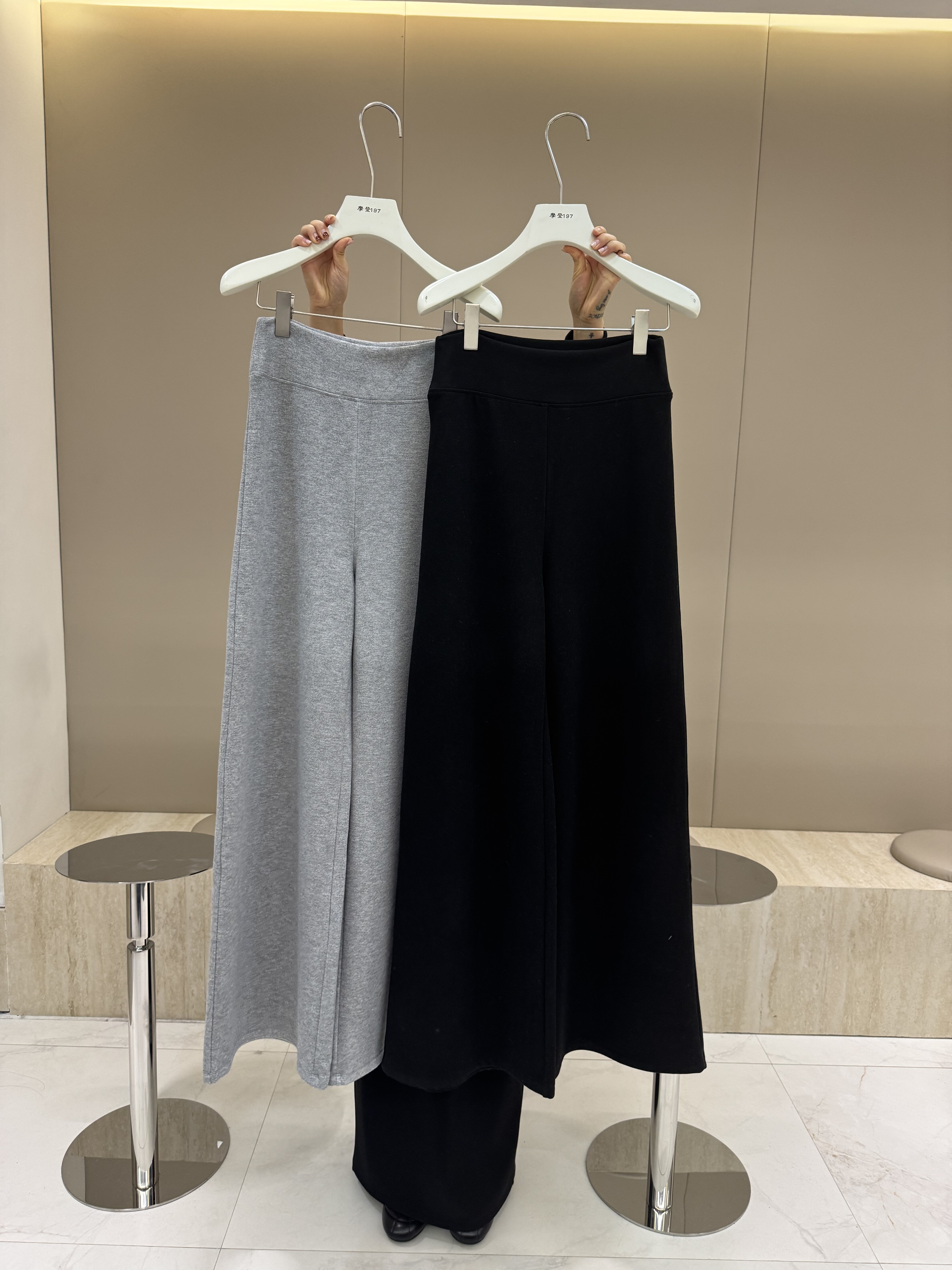 摩登mdeng羊毛高腰加绒阔腿休闲裤女冬季2025百搭微喇拖地裤Y851
