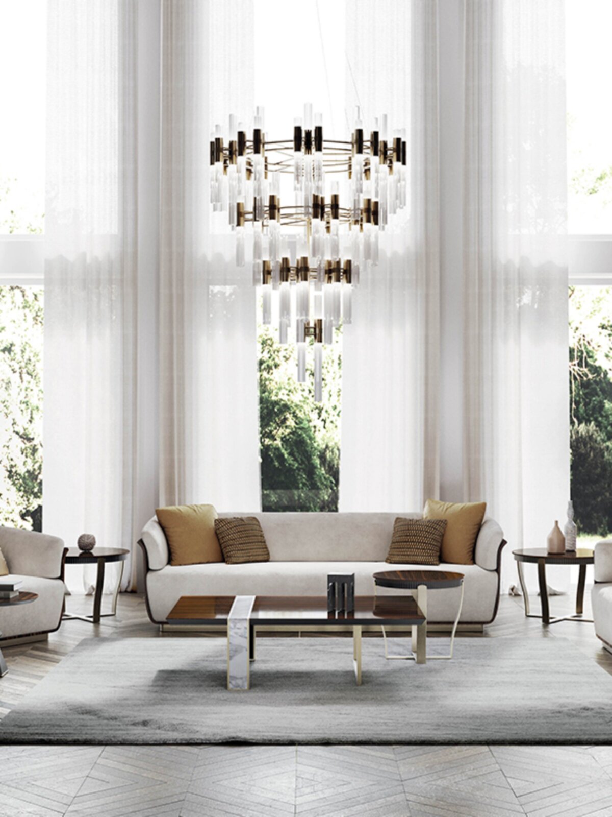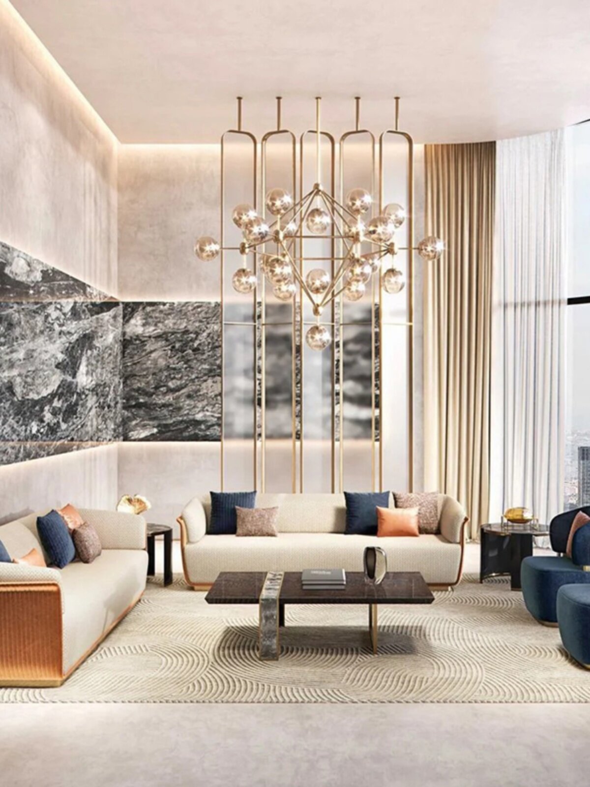 意式轻奢高端电视柜高低组合茶几客厅成套家具别墅大户型边几定制