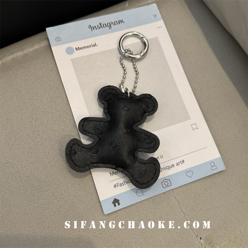 小熊皮质电镀爱心车钥匙扣手机壳挂件耳机套百搭气质个性手机链条
