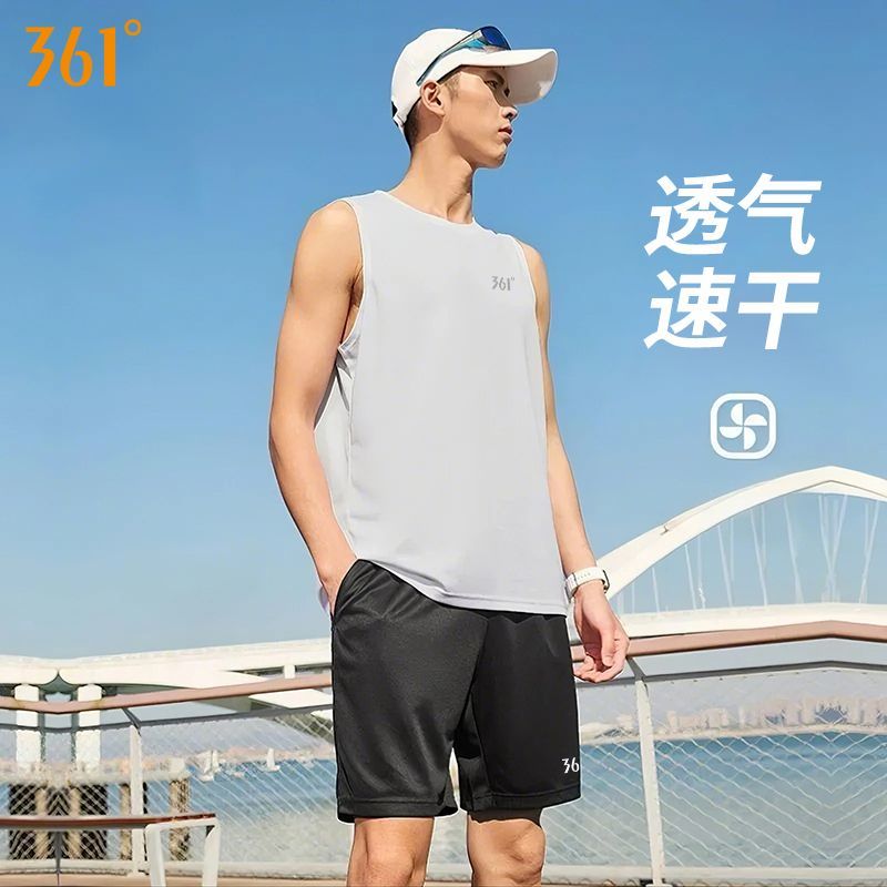 361跑步运动套装男速干透气宽松背心健身训练服冰丝无袖坎肩夏季