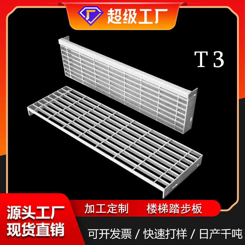 T3楼梯踏步板花纹前护板焊接固定格栅梯踏板热镀锌钢格板厂家