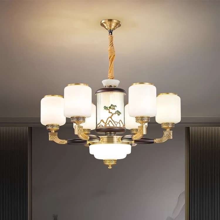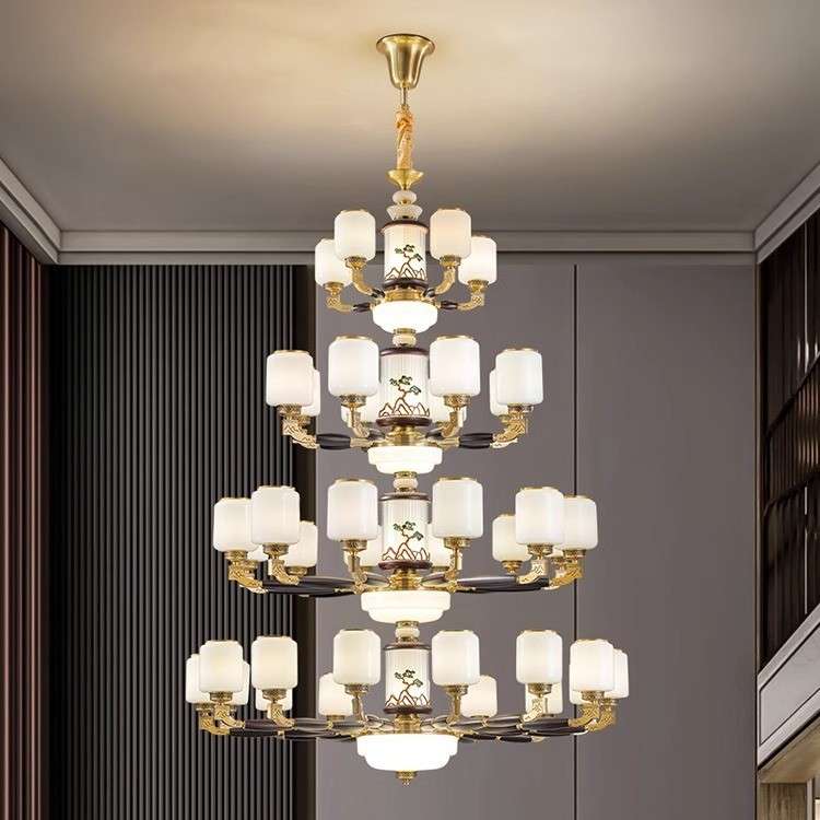 新中式客厅灯全铜实木高端大气别墅复式楼大吊灯禅意中国风餐厅灯