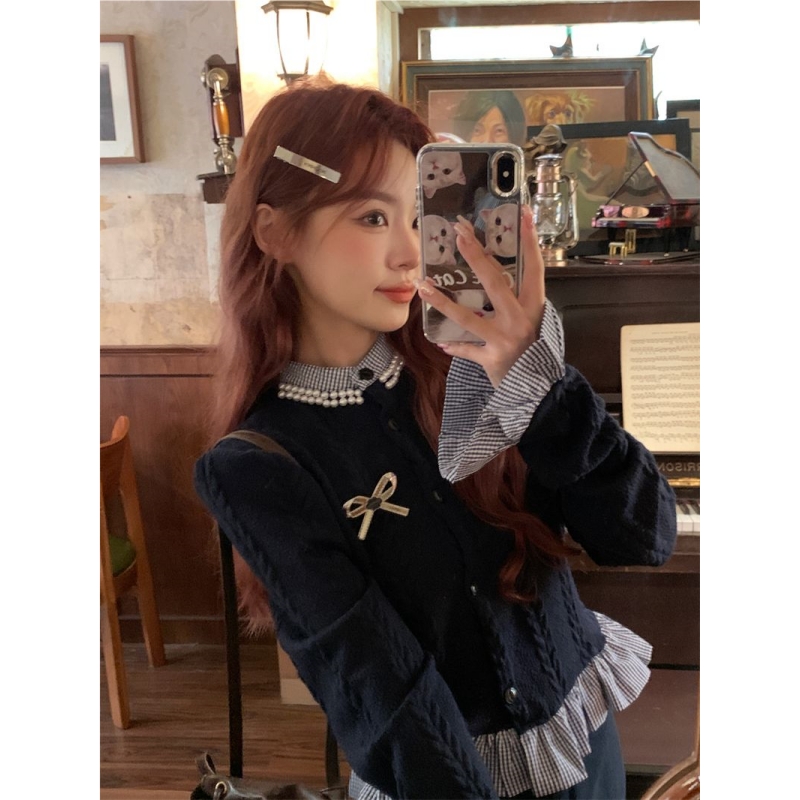 学院风套装假两件拼接毛衣针织衫女装秋季高腰半身裙长裙子两件套