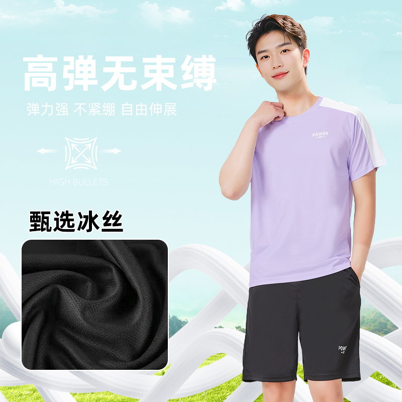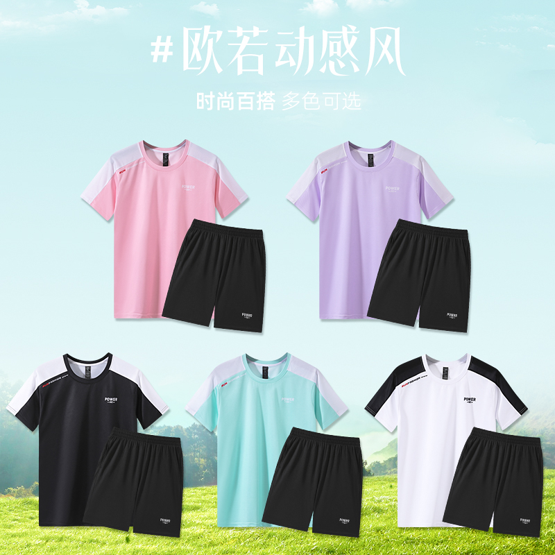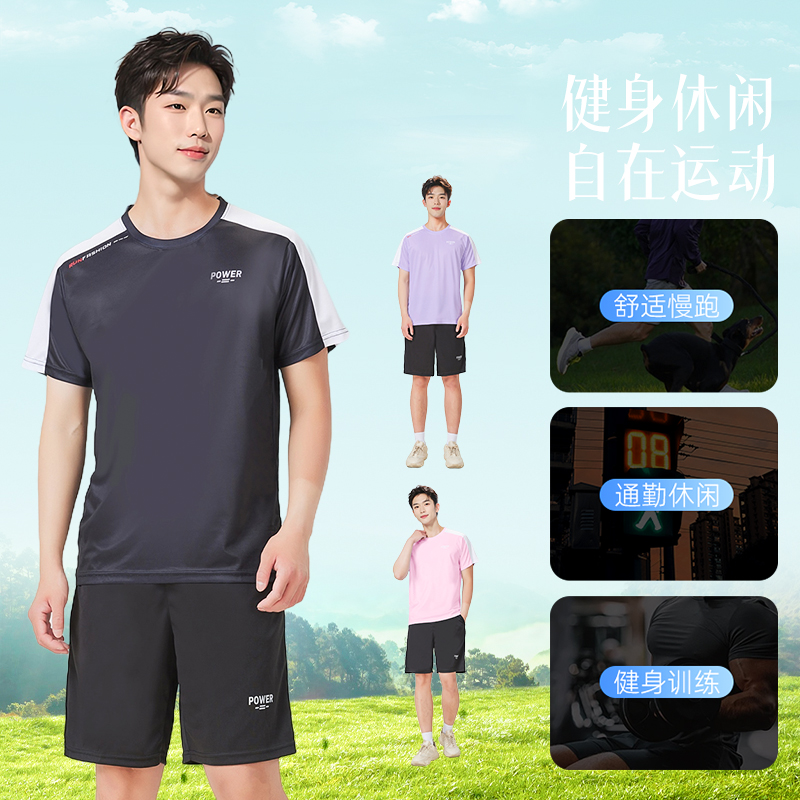 运动套装跑步服装备男女健身衣服冰丝速干T恤骑行训练晨跑服春夏