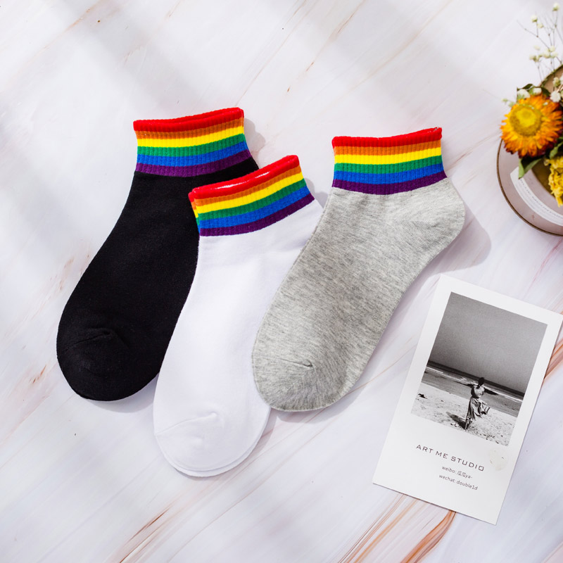 彩虹条纹袜子女夏季短袜浅口韩国可爱日系学院风ins潮春天街头