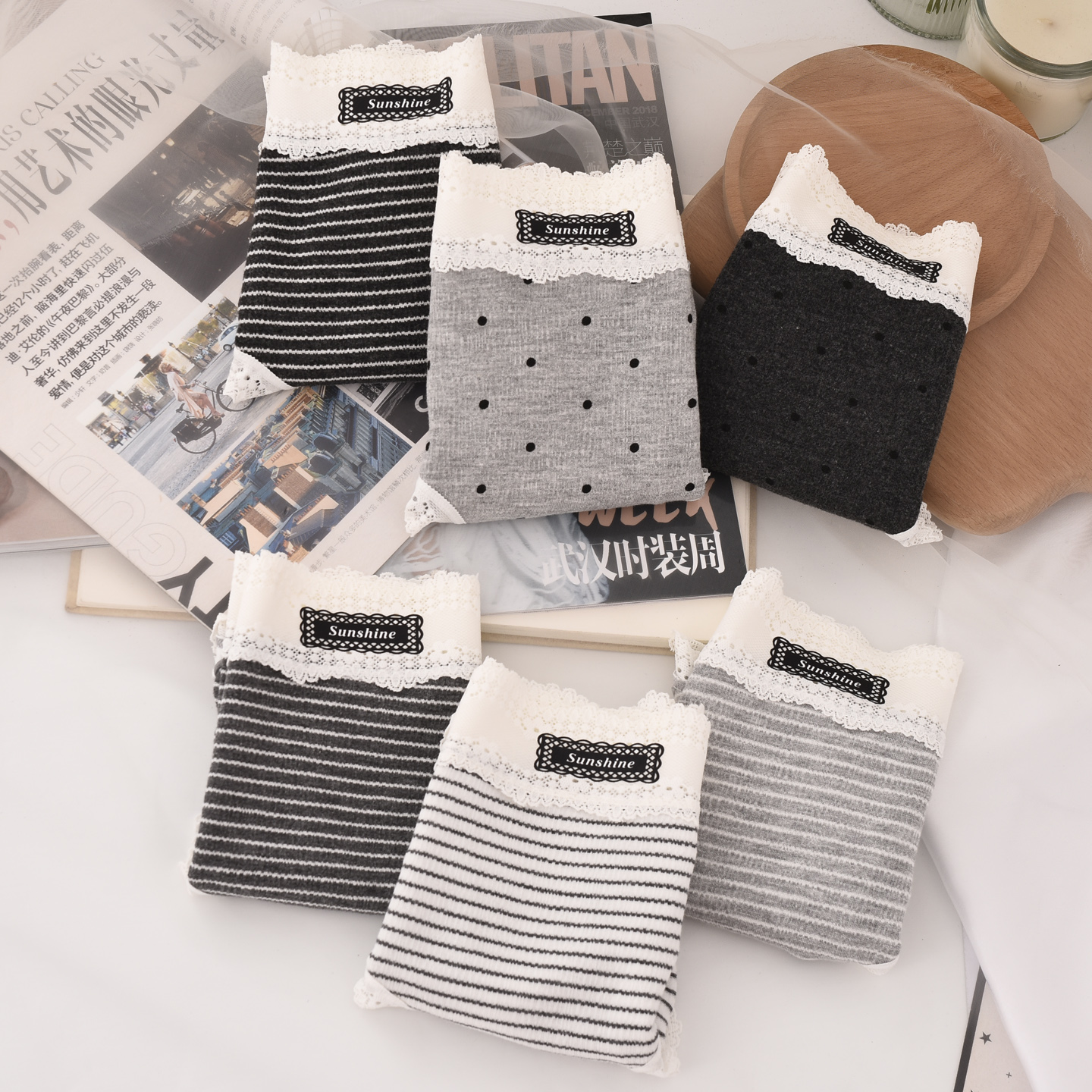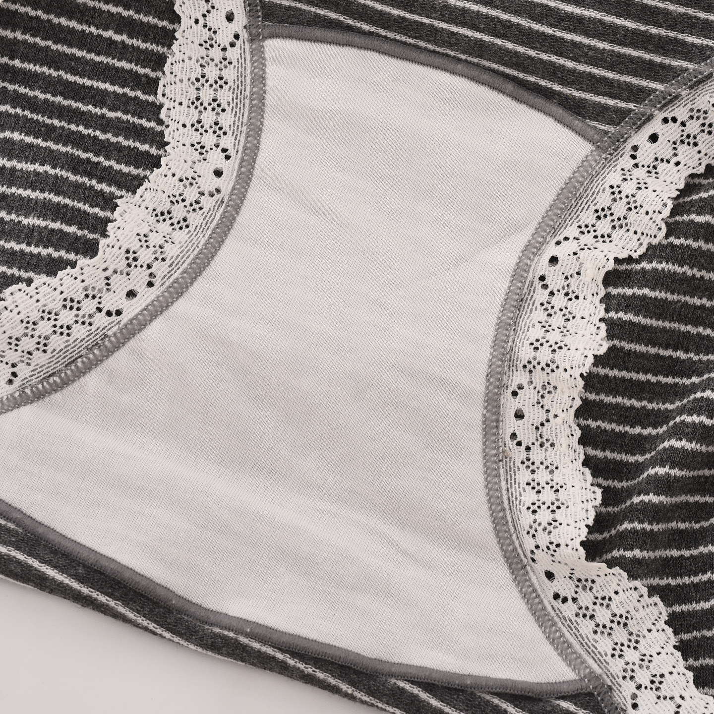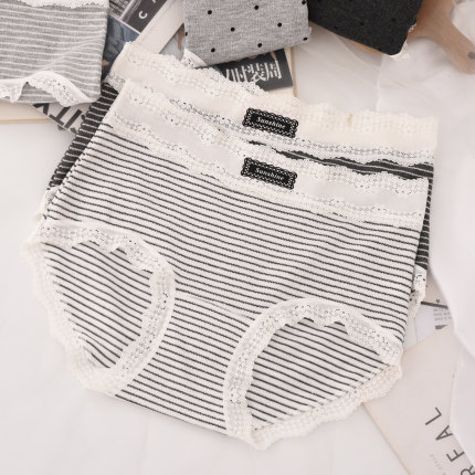 加长底裆莫代尔棉中腰内裤女蕾丝边条纹大码胖MM少女包臀三角短裤