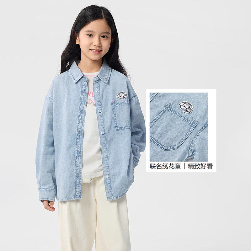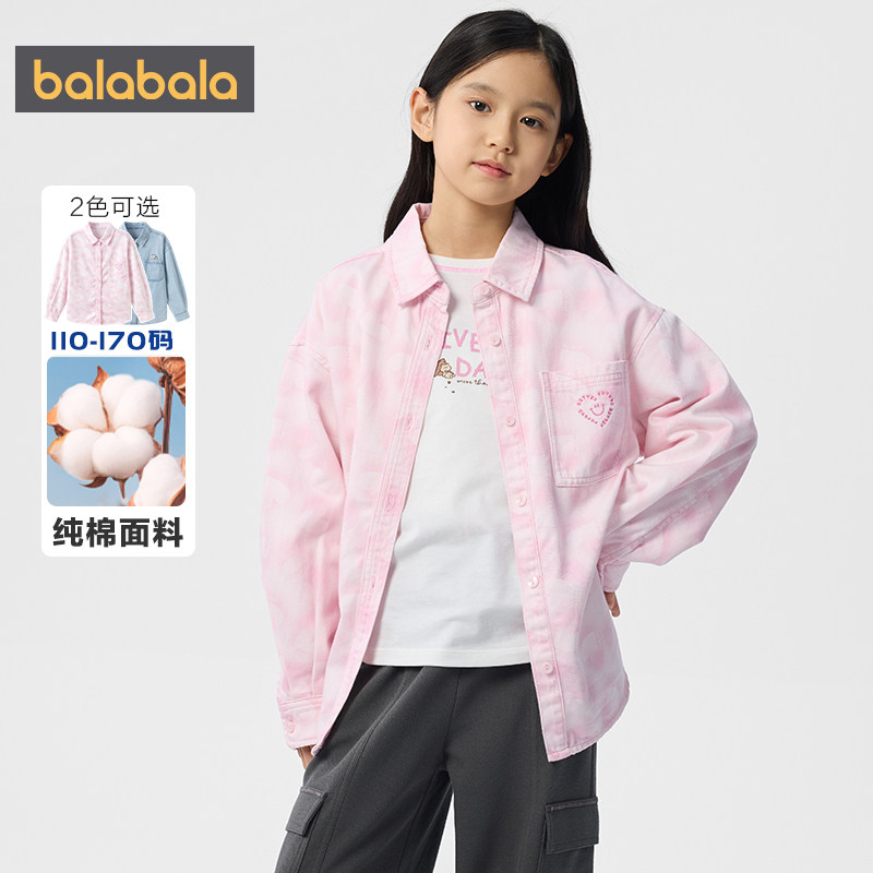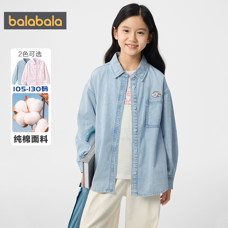 巴拉巴拉女童牛仔衬衫中大童宝宝纯棉长袖衬衣春秋款儿童洋气外套