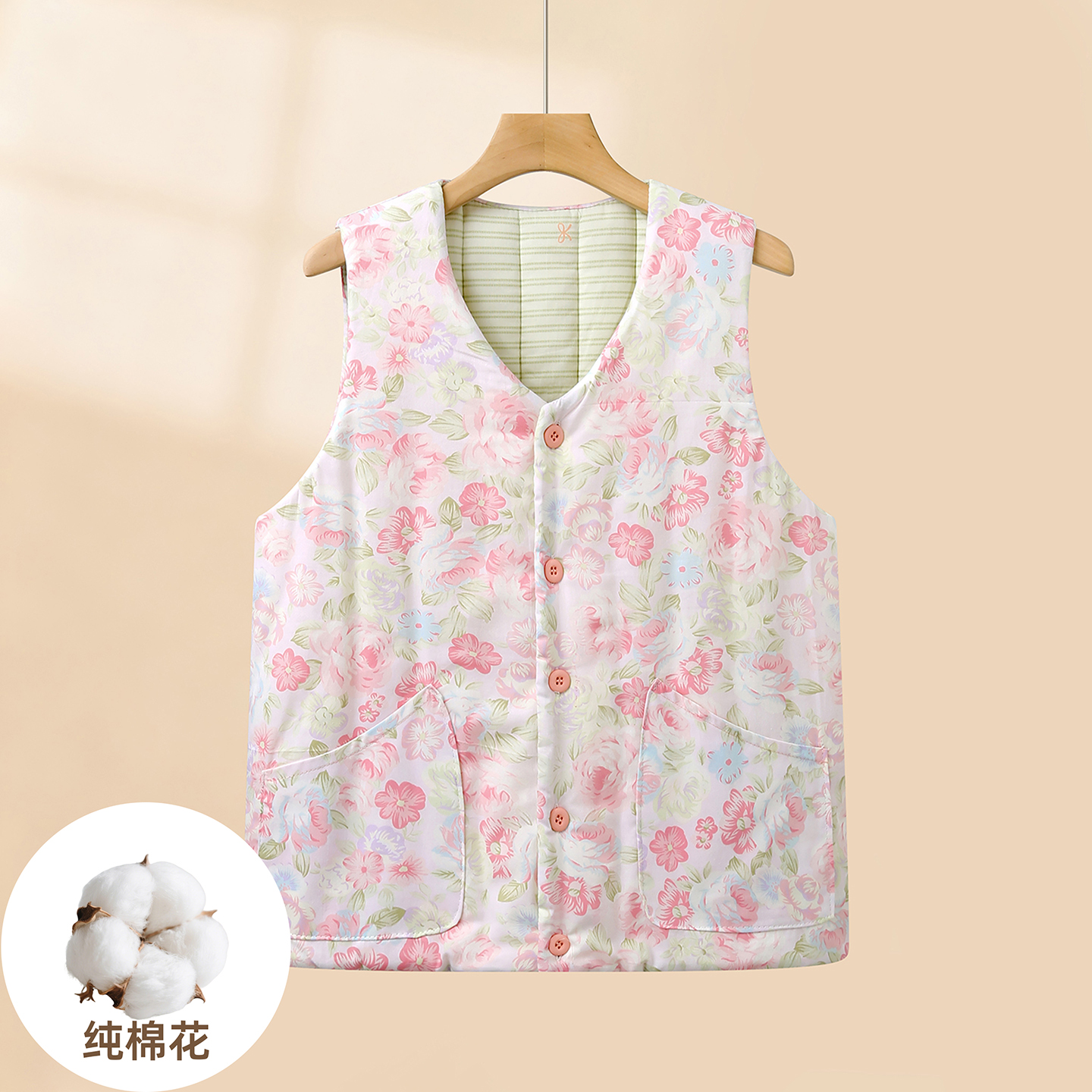 纯棉花马甲女冬季加厚保暖背心居家宽松碎花坎肩妈妈装内穿外穿