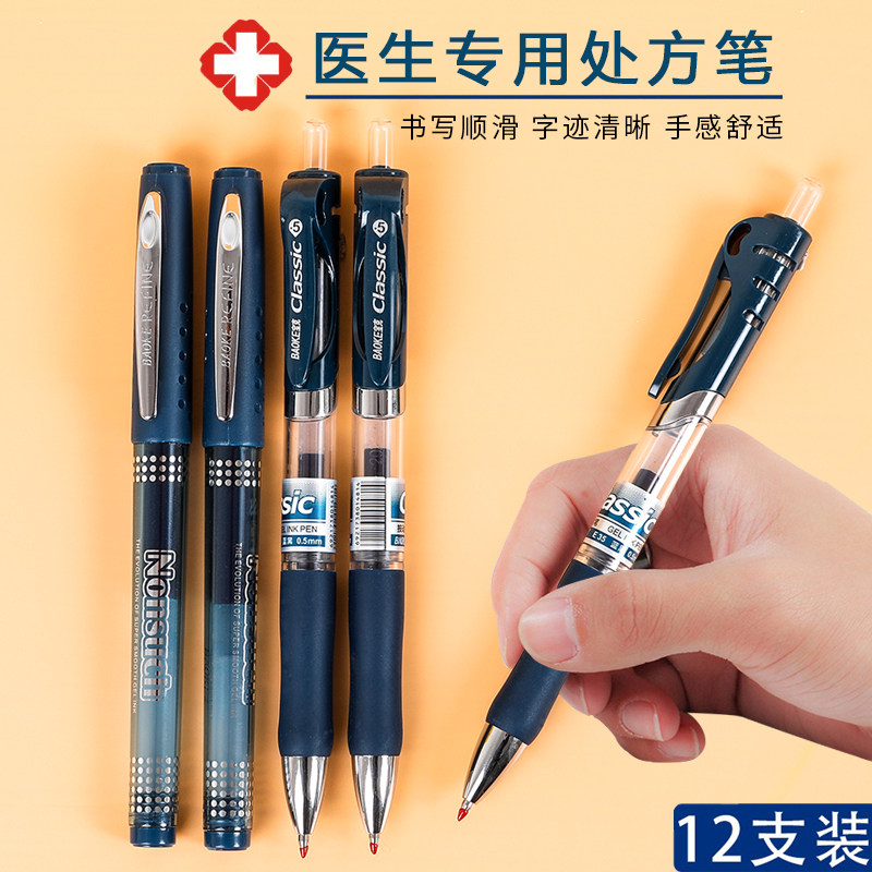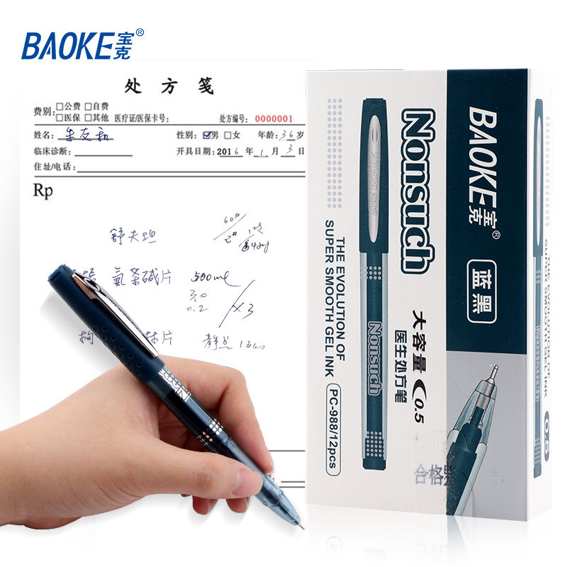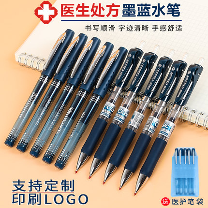 宝克蓝黑笔中性笔处方笔墨蓝色笔蓝黑笔芯签字水笔学生用企业广告定制印刷logo