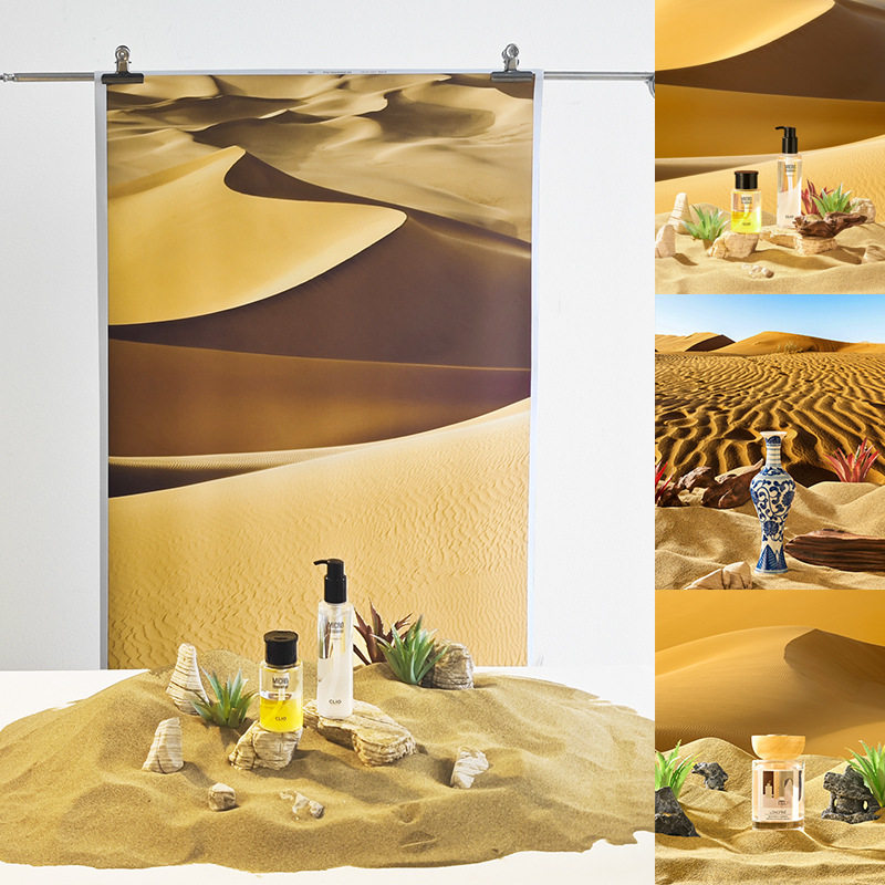 ins风夏日微景沙漠摄影专业背景布拍照道具小物件化妆品饰品美妆饮料摆拍装饰天空黄沙子仿石头拍摄布景
