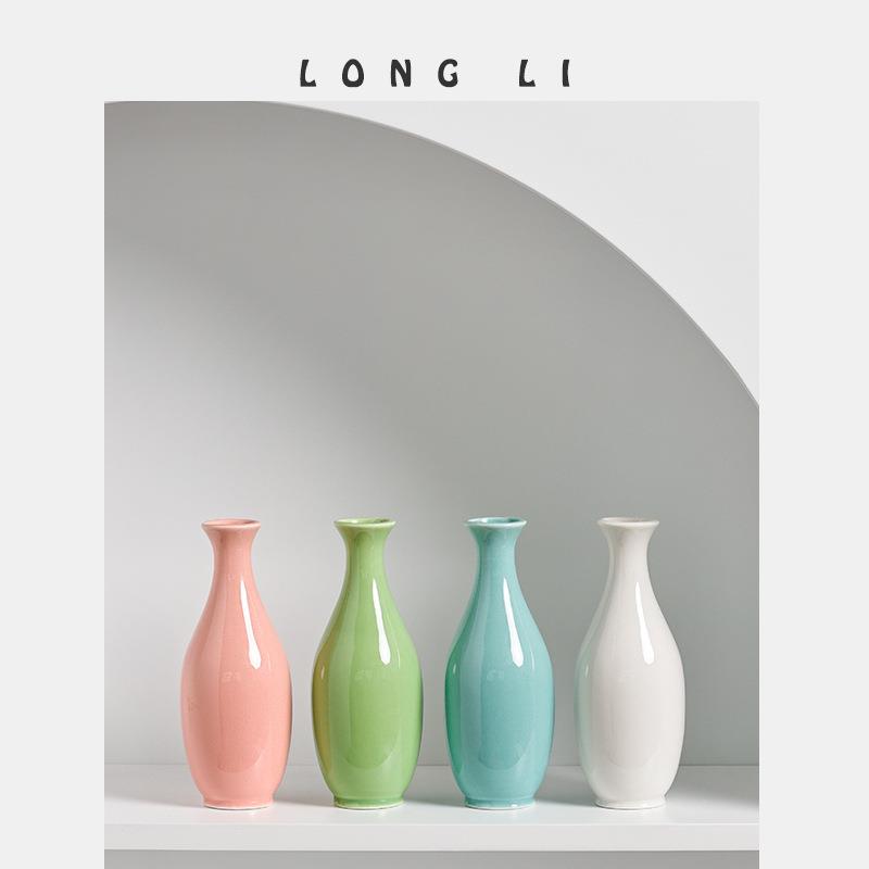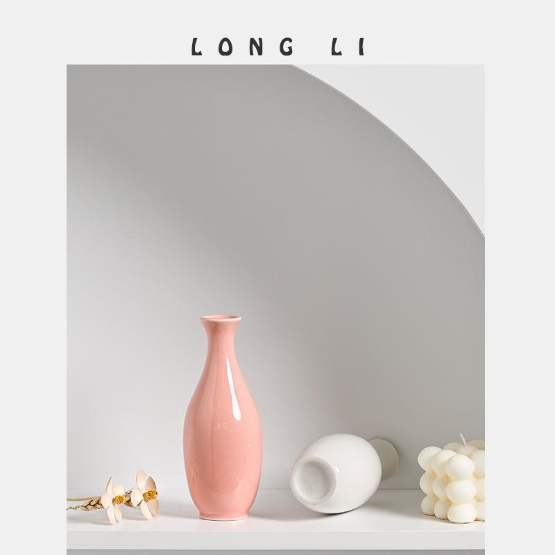nsi风色釉美人陶瓷小花瓶级感摆件客厅插花摆粉色设郁金香高鲜。
