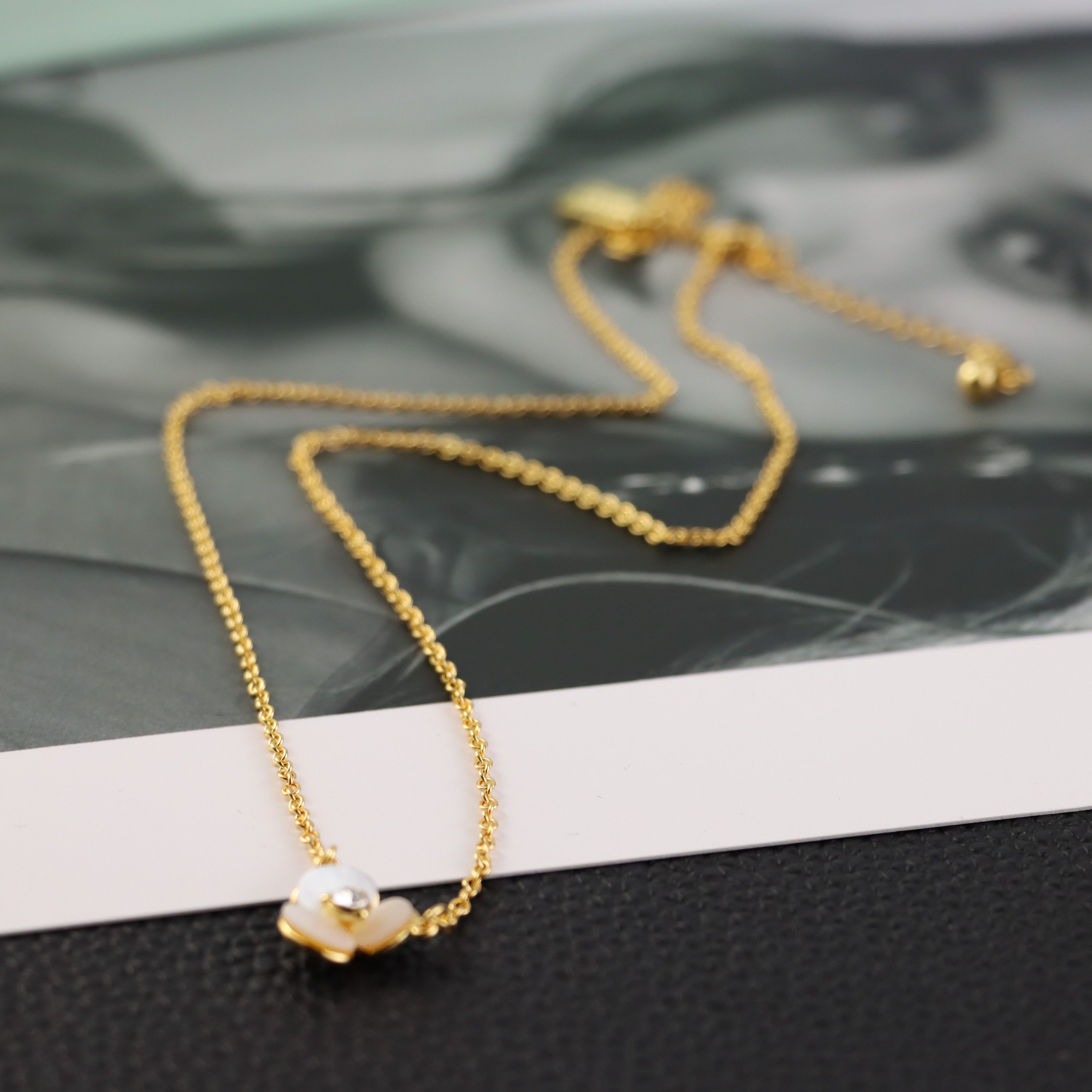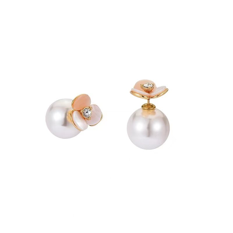 青岛外贸饰品25年小清新三瓣花耳环珍珠贝母耳钉时尚优雅锁骨链女