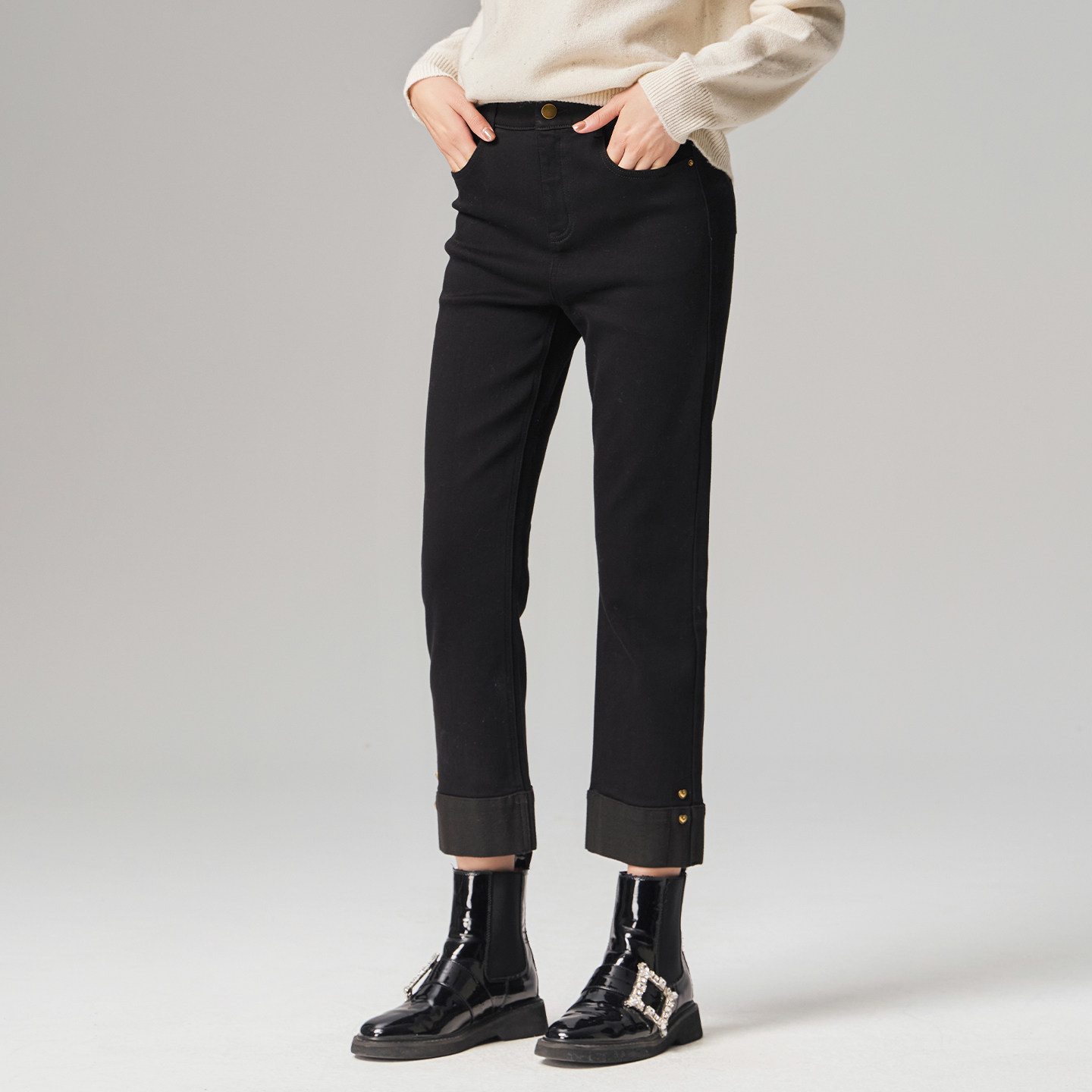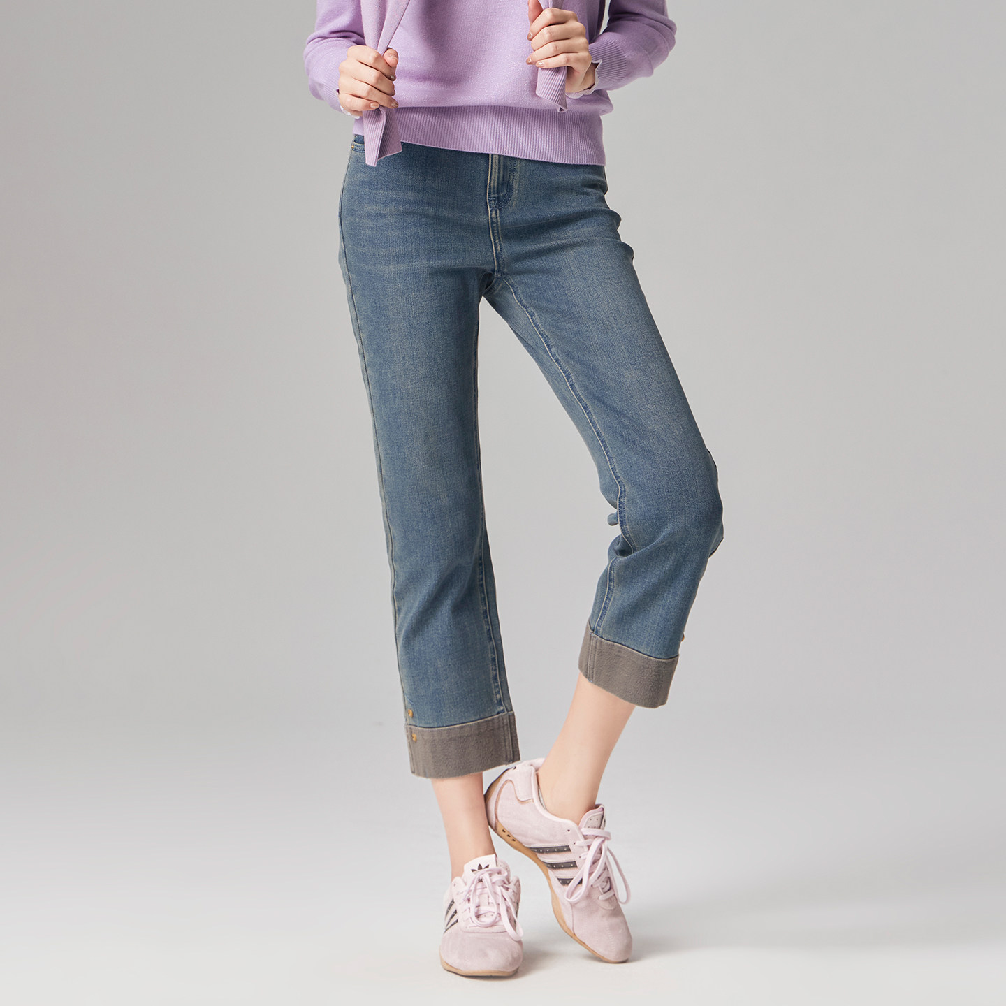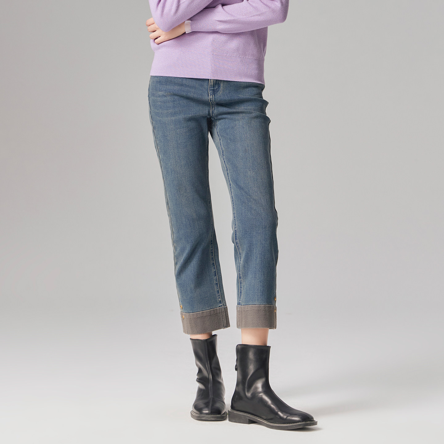 歌蒂诗冬季专柜新款时尚百搭宽松显瘦直筒9分牛仔裤1E41N9509