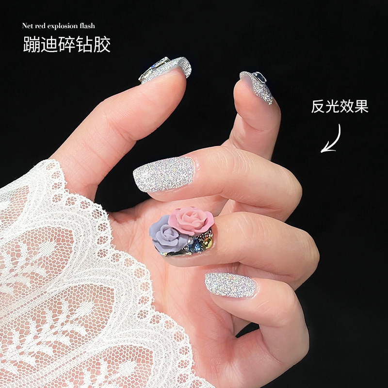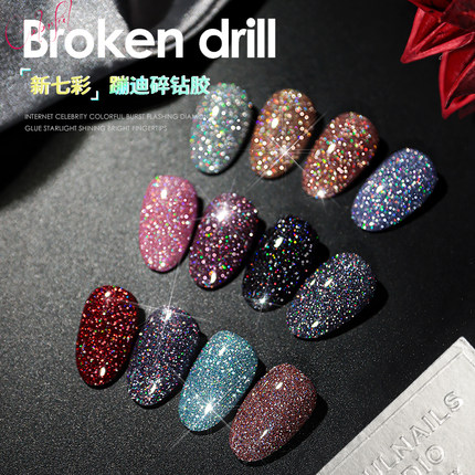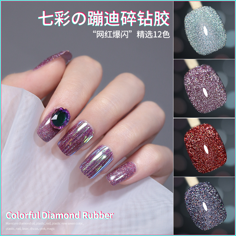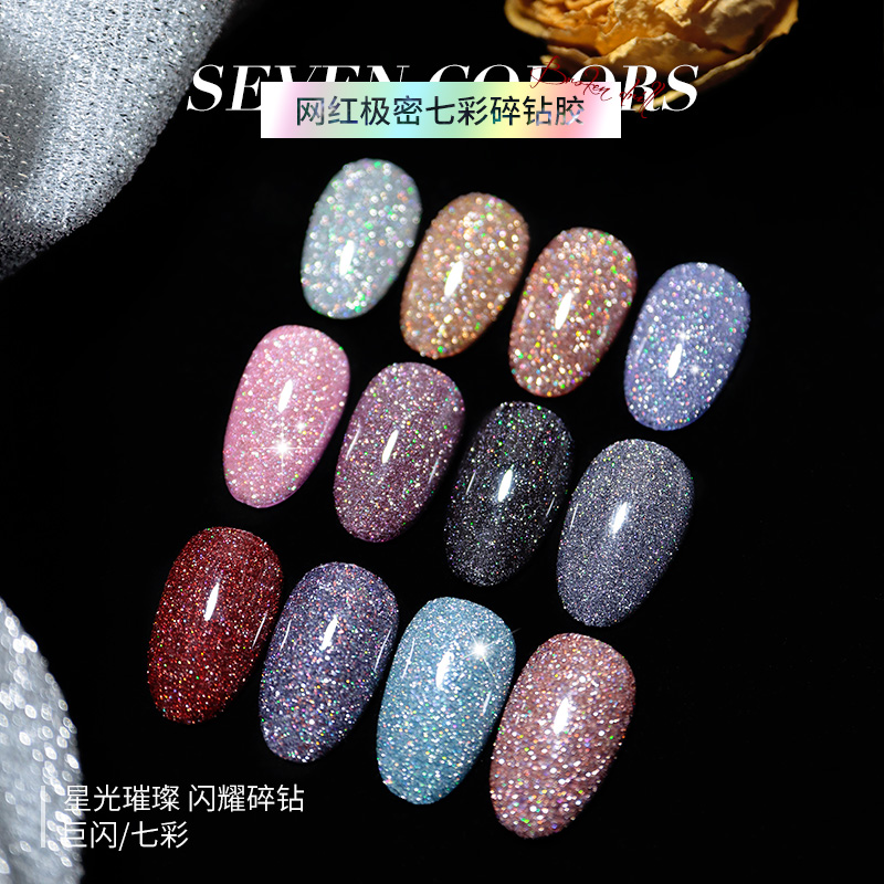 网红爆款指甲油胶2025年新款七彩碎钻胶美甲镭射蹦迪粉幻彩光疗胶