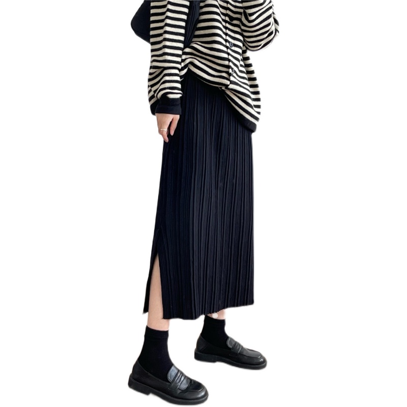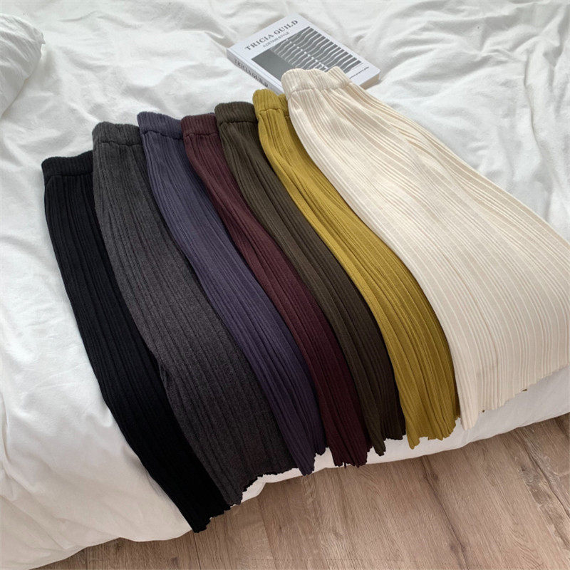 秋冬新款侧开叉针织半身裙女中长款一步裙高腰显瘦百搭黑色包臀裙