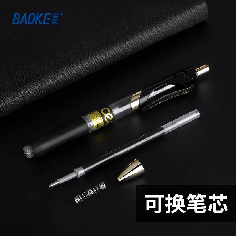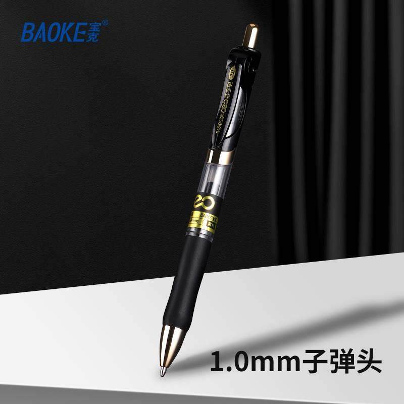 宝克按动中性笔加粗1.0mm学生用粗头硬笔书法笔黑色签字笔练字专用教师商务办公签名红笔芯大笔画碳素笔